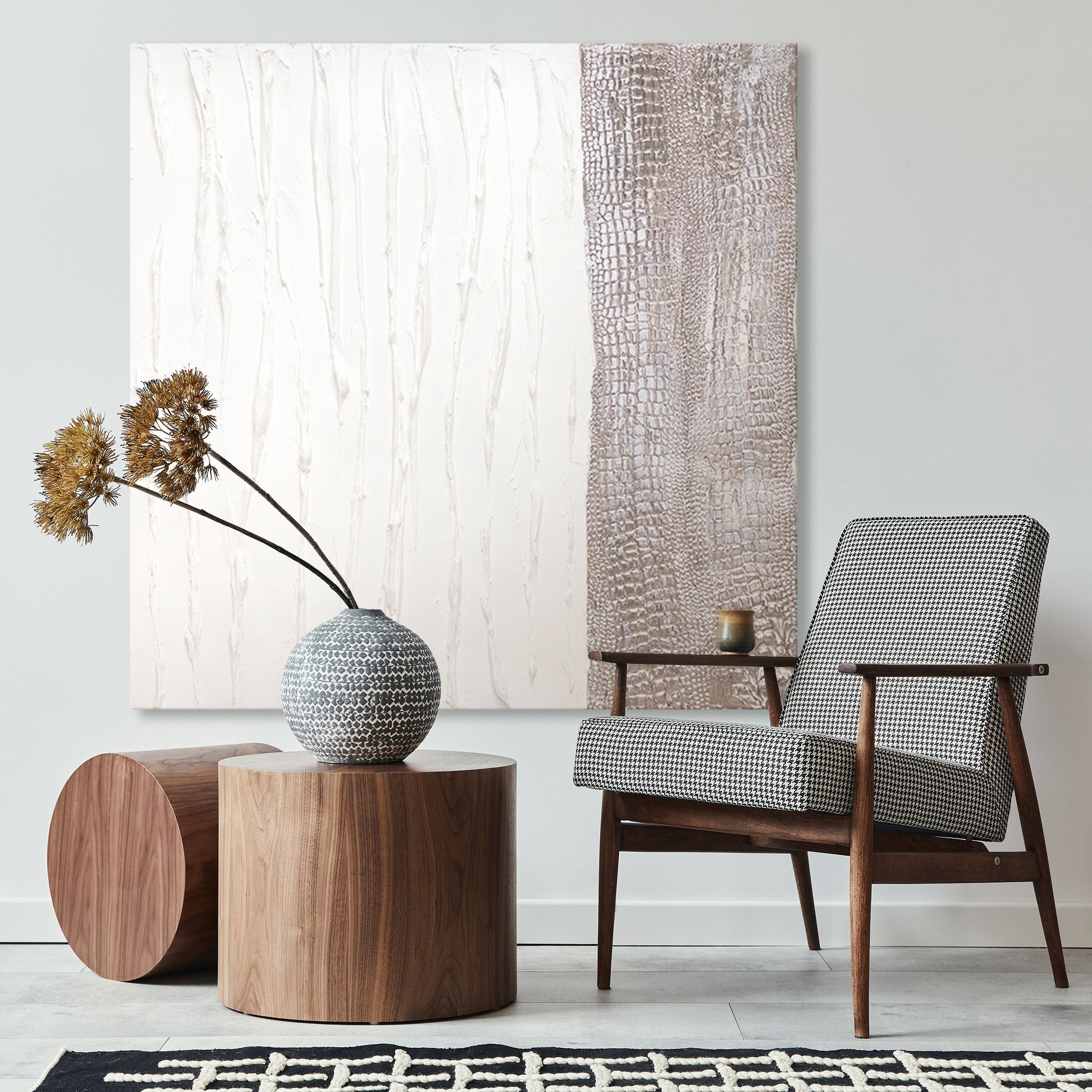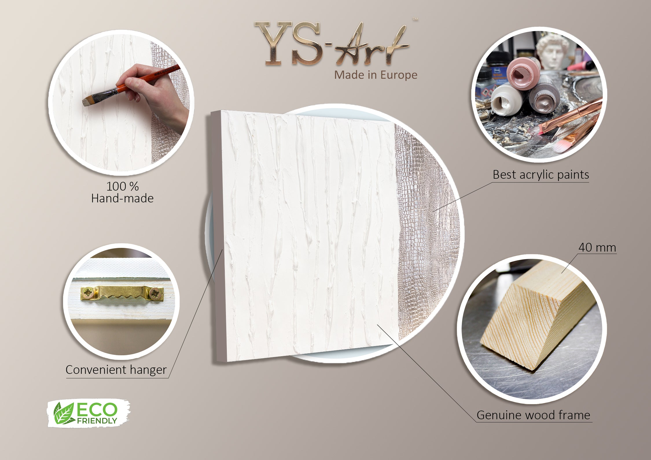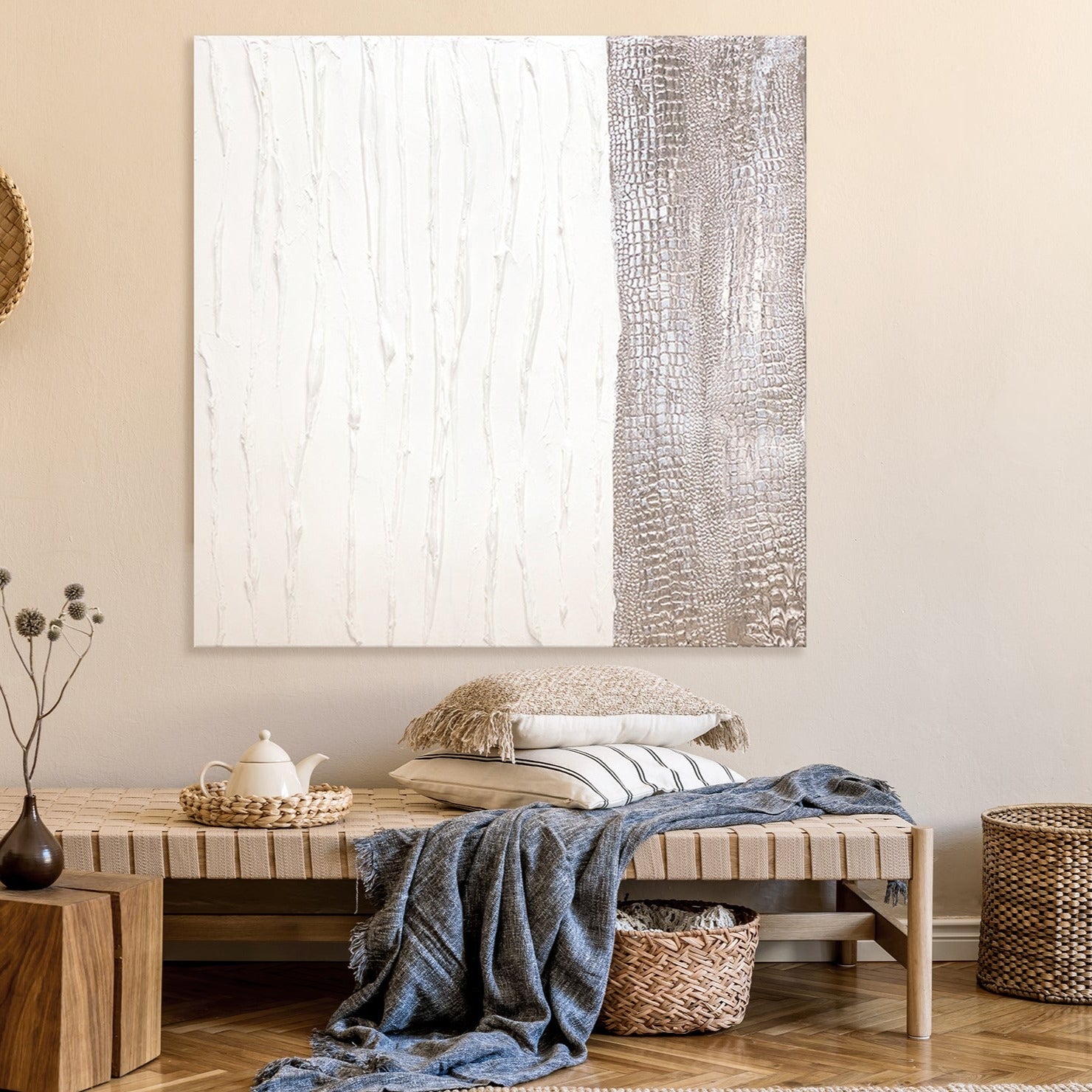 - Materiales: Acrílico, lienzo, bastidor de madera natural