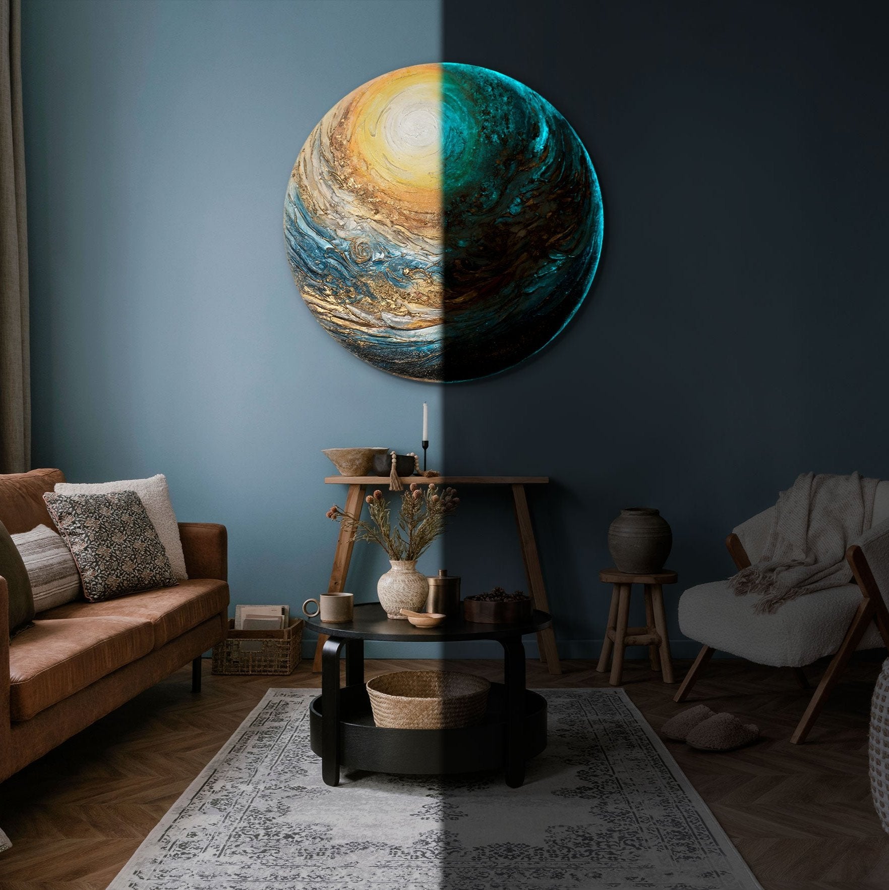 • Leuchtendes Acryl Gemälde in Planetform "Goldsphere" Abstrakte Kunst