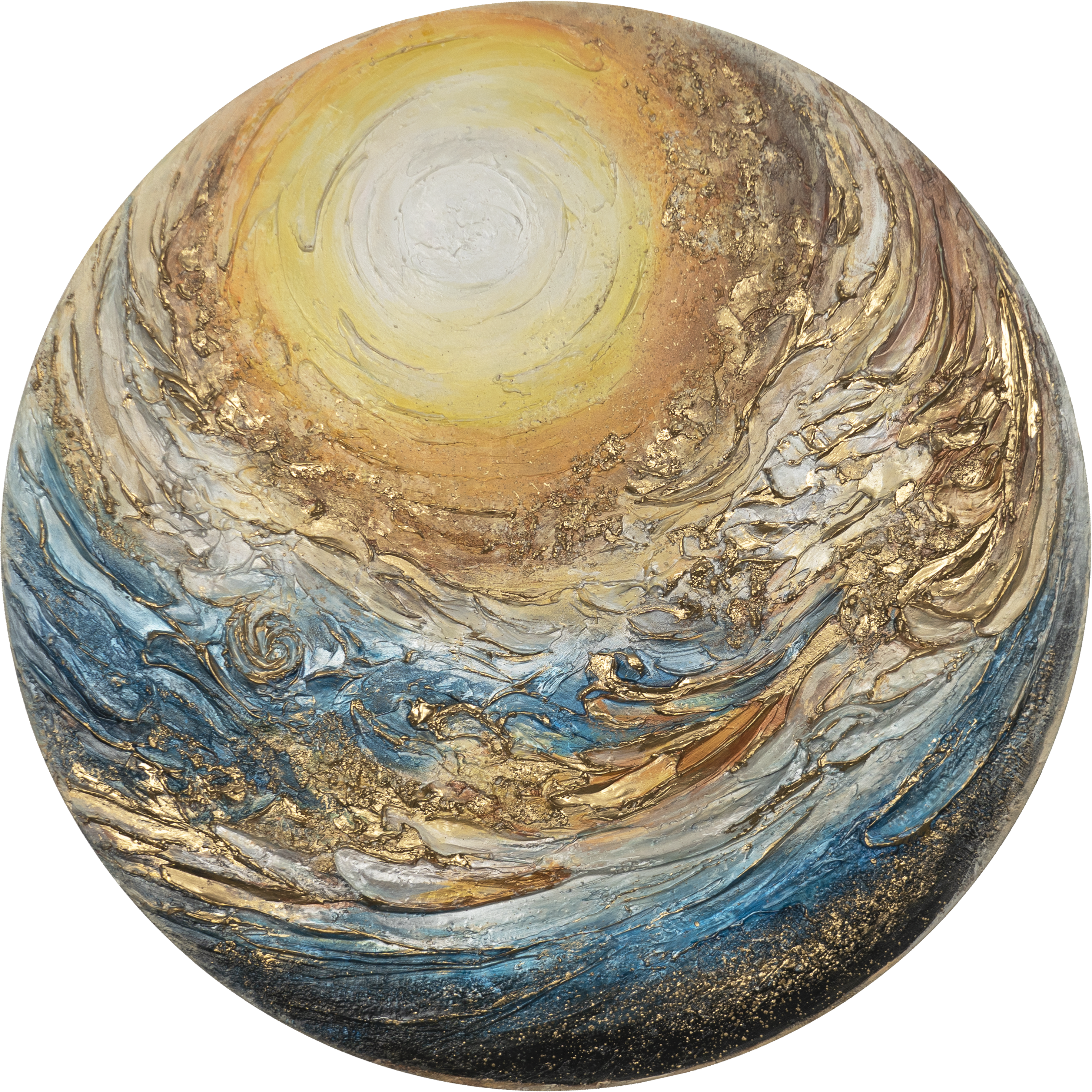 Leuchtendes Acryl Gemälde in Planetform "Goldsphere" Abstrakte Kunst