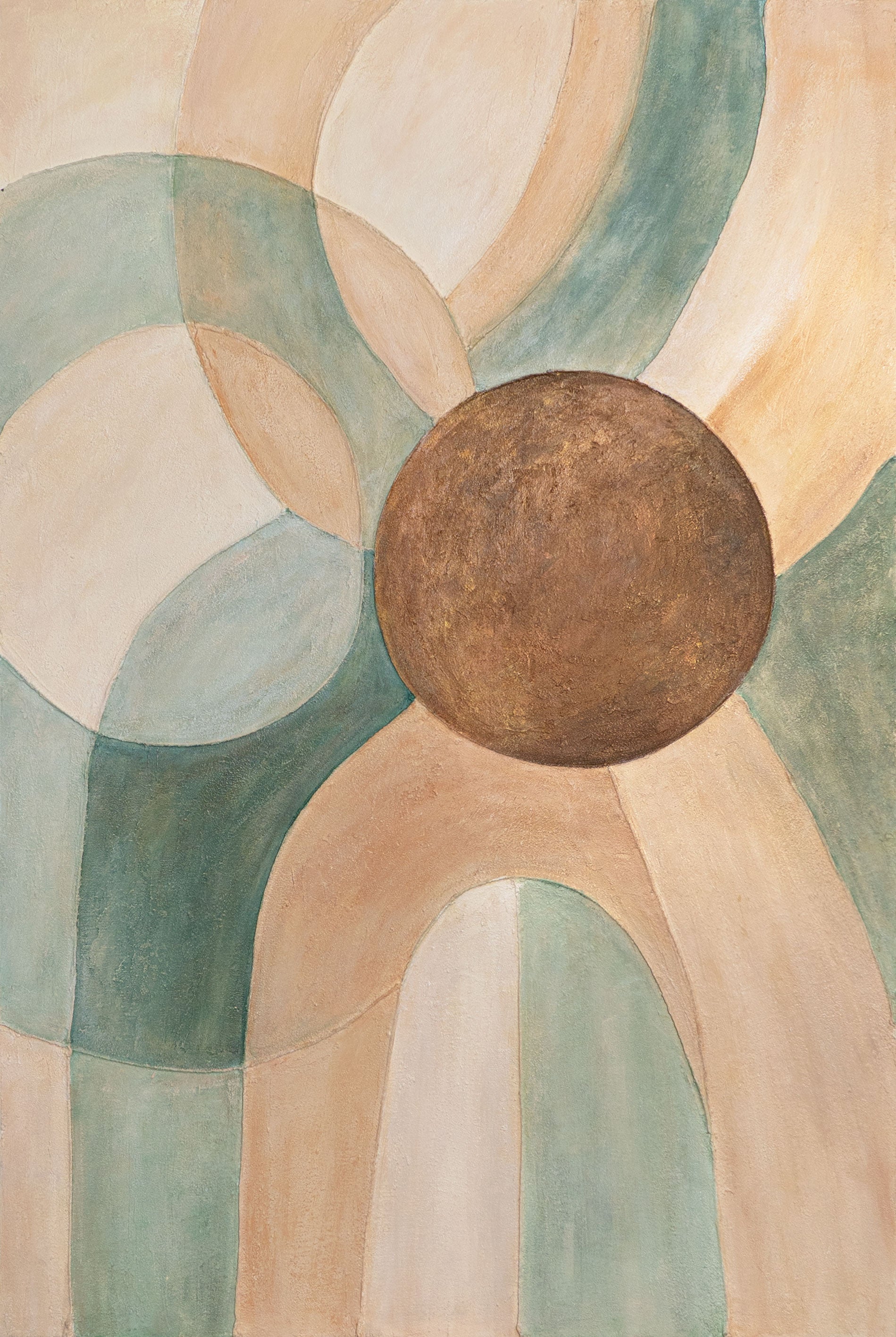 «Ciclo de la Vida» es una pintura acrílica pintada a mano que cautiva con sus formas suaves y fluidas y sus armoniosas transiciones de color. La combinación de cálidos tonos beige y verdes fríos evoca la naturaleza, la tierra y la renovación. La superficie texturizada crea profundidad y movimiento, símbolo de equilibrio y vitalidad.