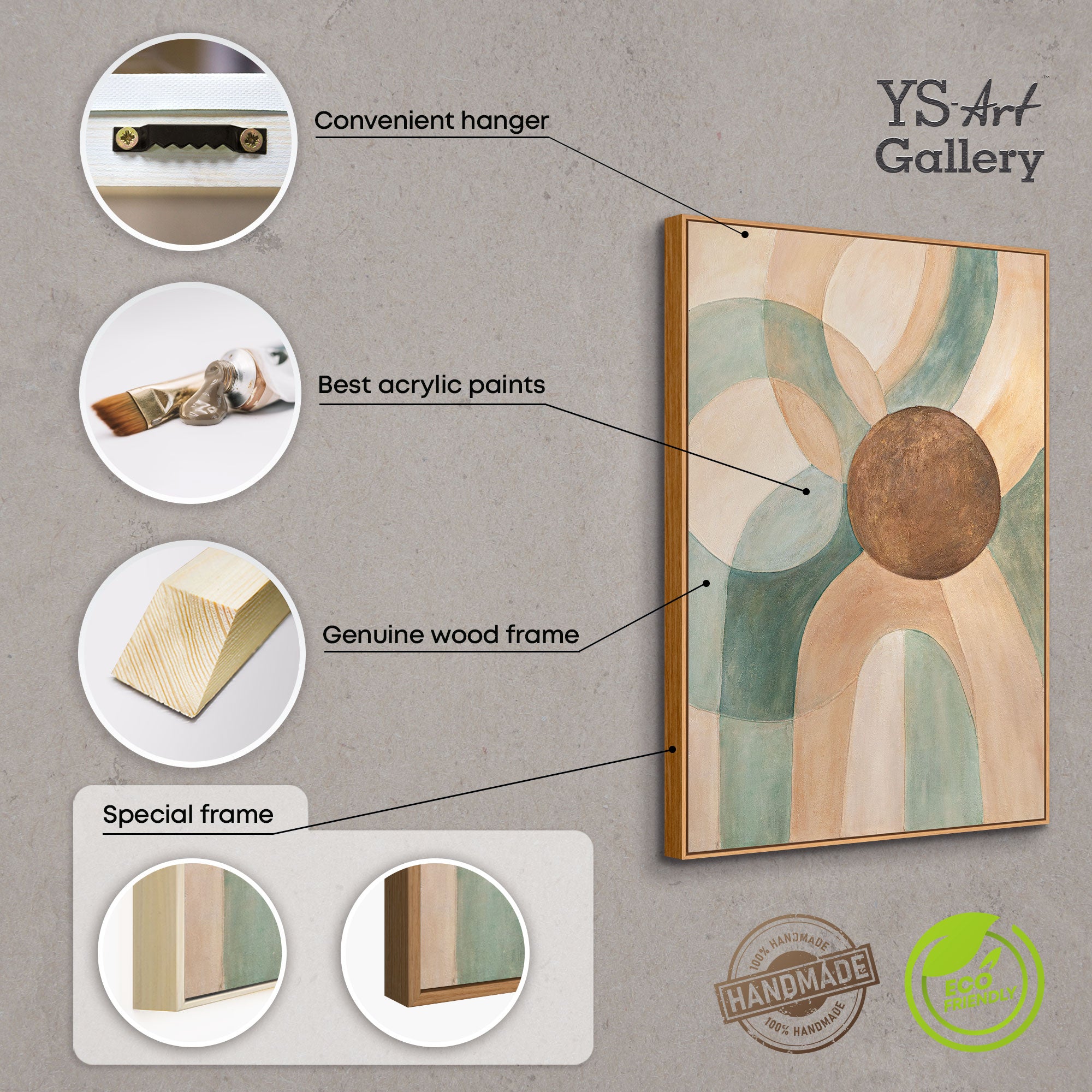Esta pintura abstracta acrílica sobre lienzo es ideal para espacios modernos, dormitorios u oficinas. «Ciclo de la Vida» representa tranquilidad, naturalidad y una estética atemporal. Con envío seguro y entrega gratuita, recibirá una obra de arte única, pintada a mano, que combina elegancia y armonía.