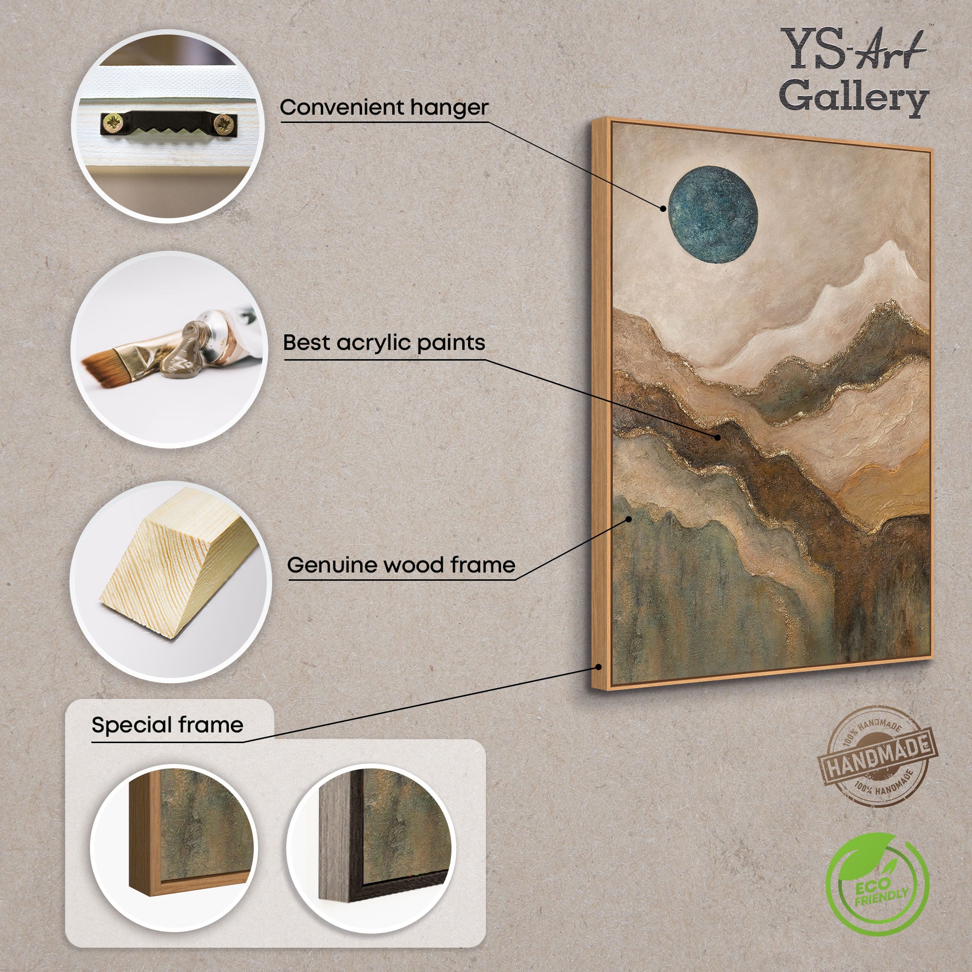 • Abstraktes Leinwandbild Berge und Mond handgemalt