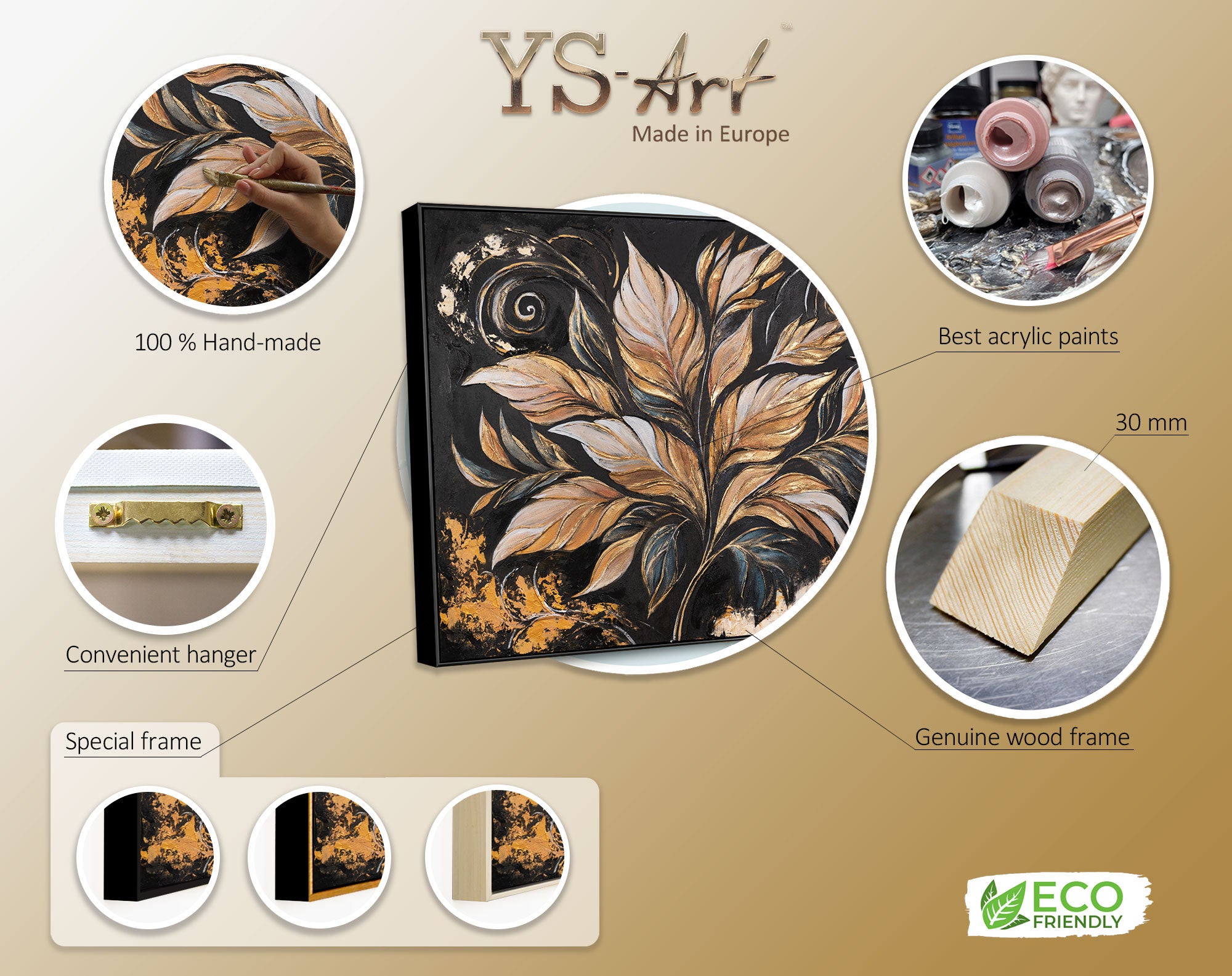 • Abstraktes Blattmotiv – Schwarz-Gold Bild mit rahmen