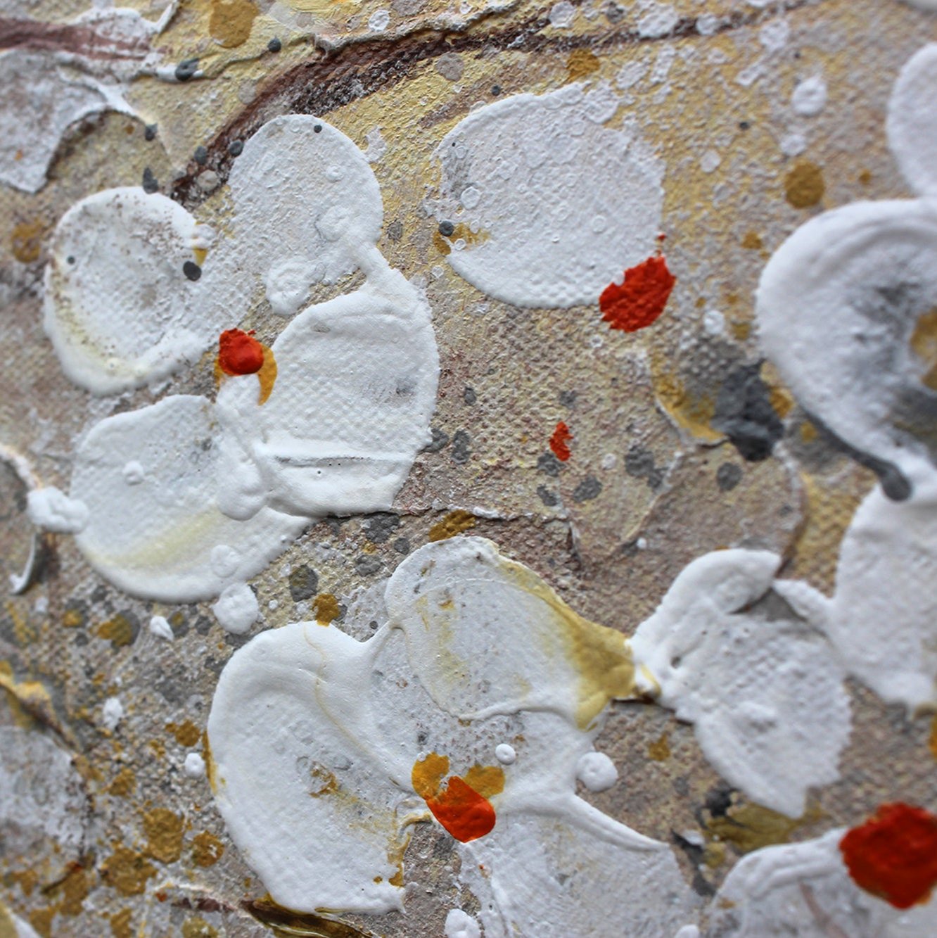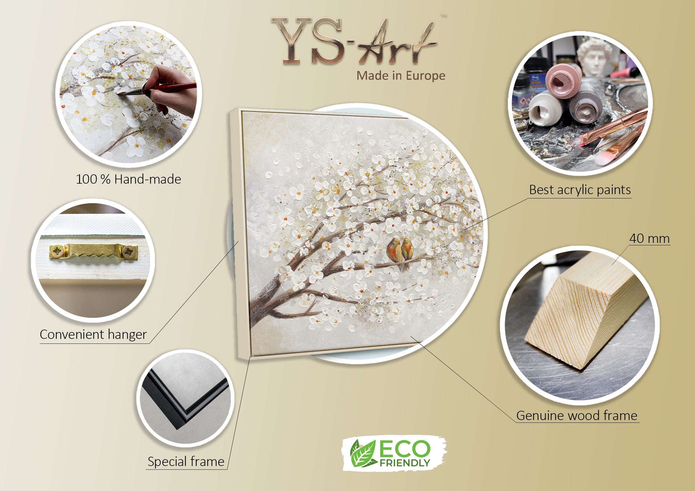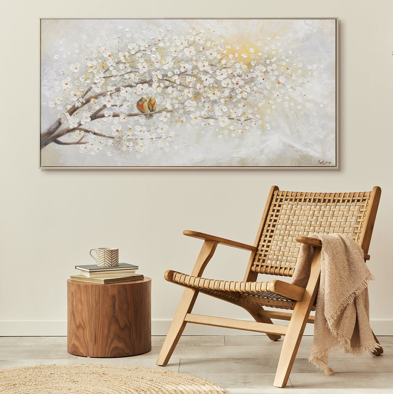 Arte moderno – Cuadro pintado a mano con flores y aves sobre lienzo