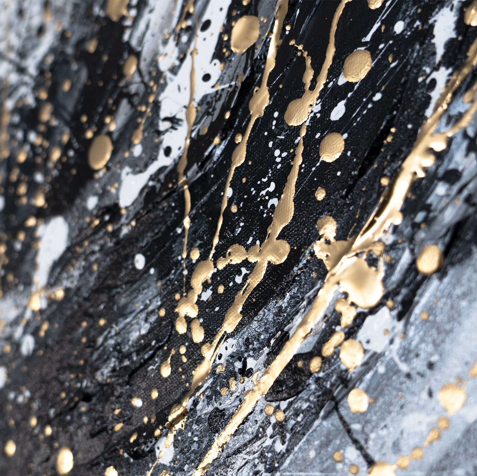 • Handgemaltes Acrylbild Schwarz Gold moderne Wandkunst Raum