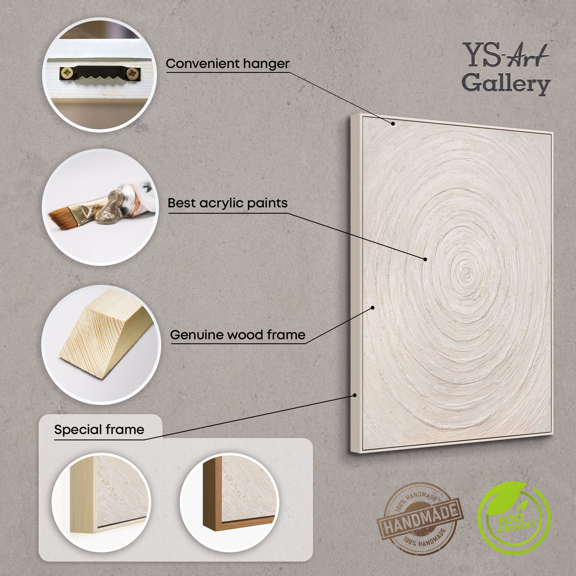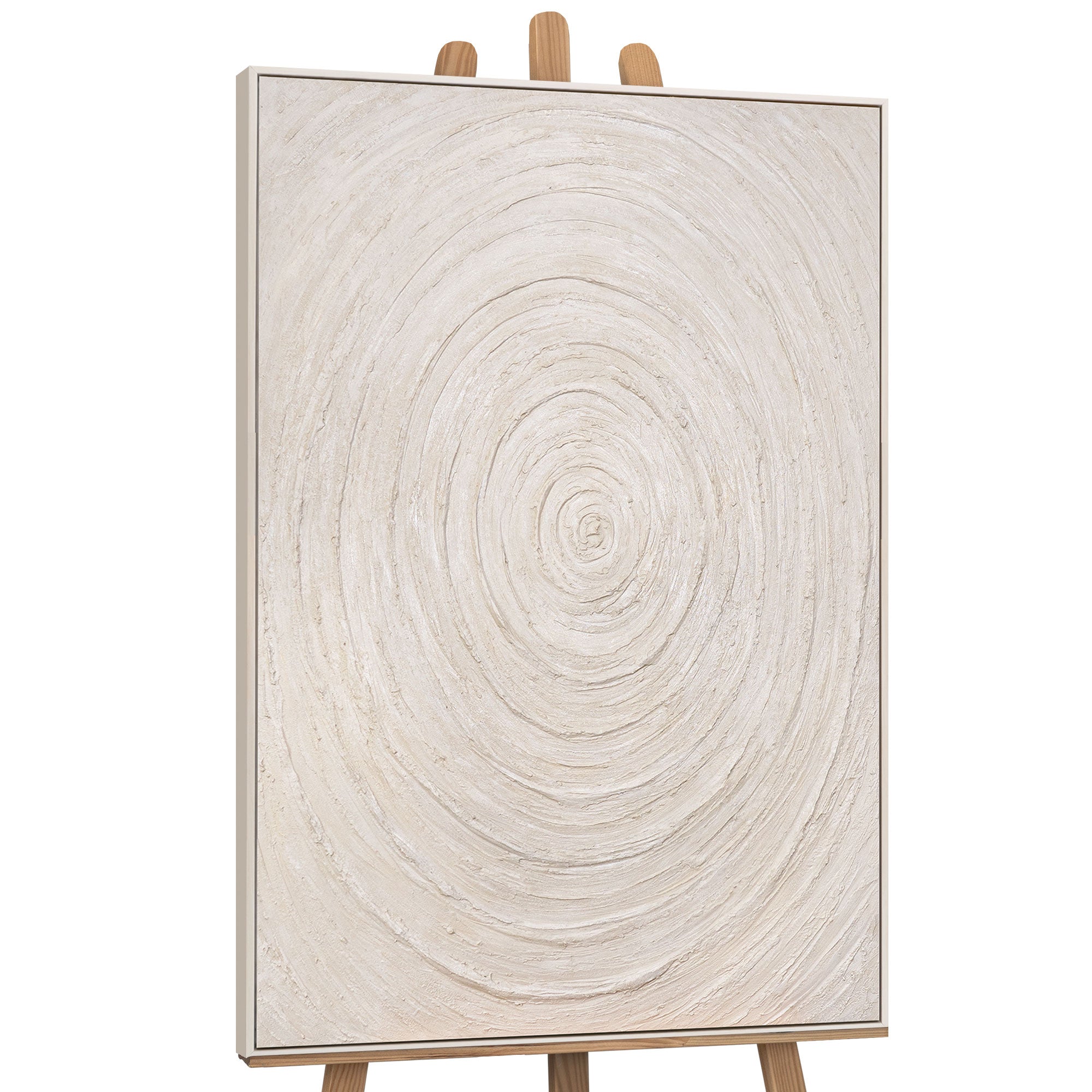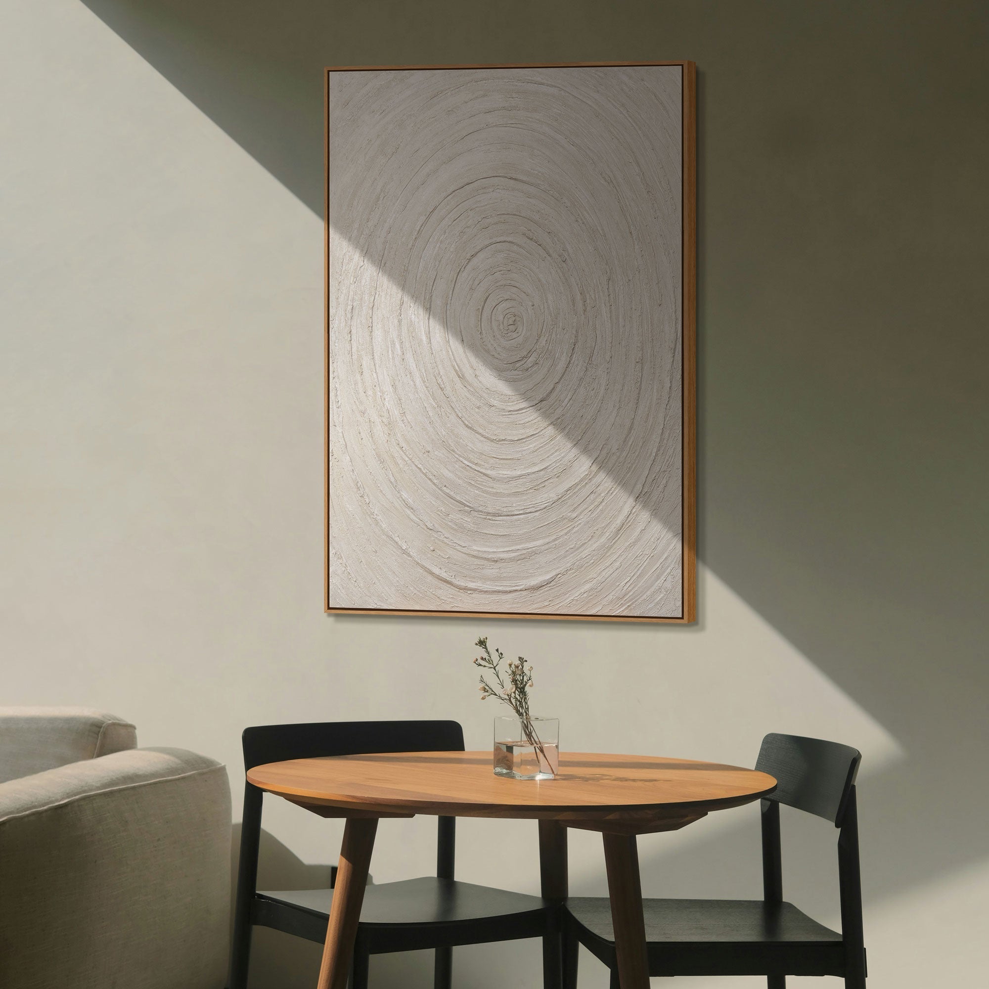 Aporta armonía y serenidad a tu hogar con este cuadro abstracto hecho a mano. Los círculos concéntricos en suaves tonos beige y naturales evocan ondas o anillos de crecimiento, otorgando a la obra una profundidad y simbolismo únicos.