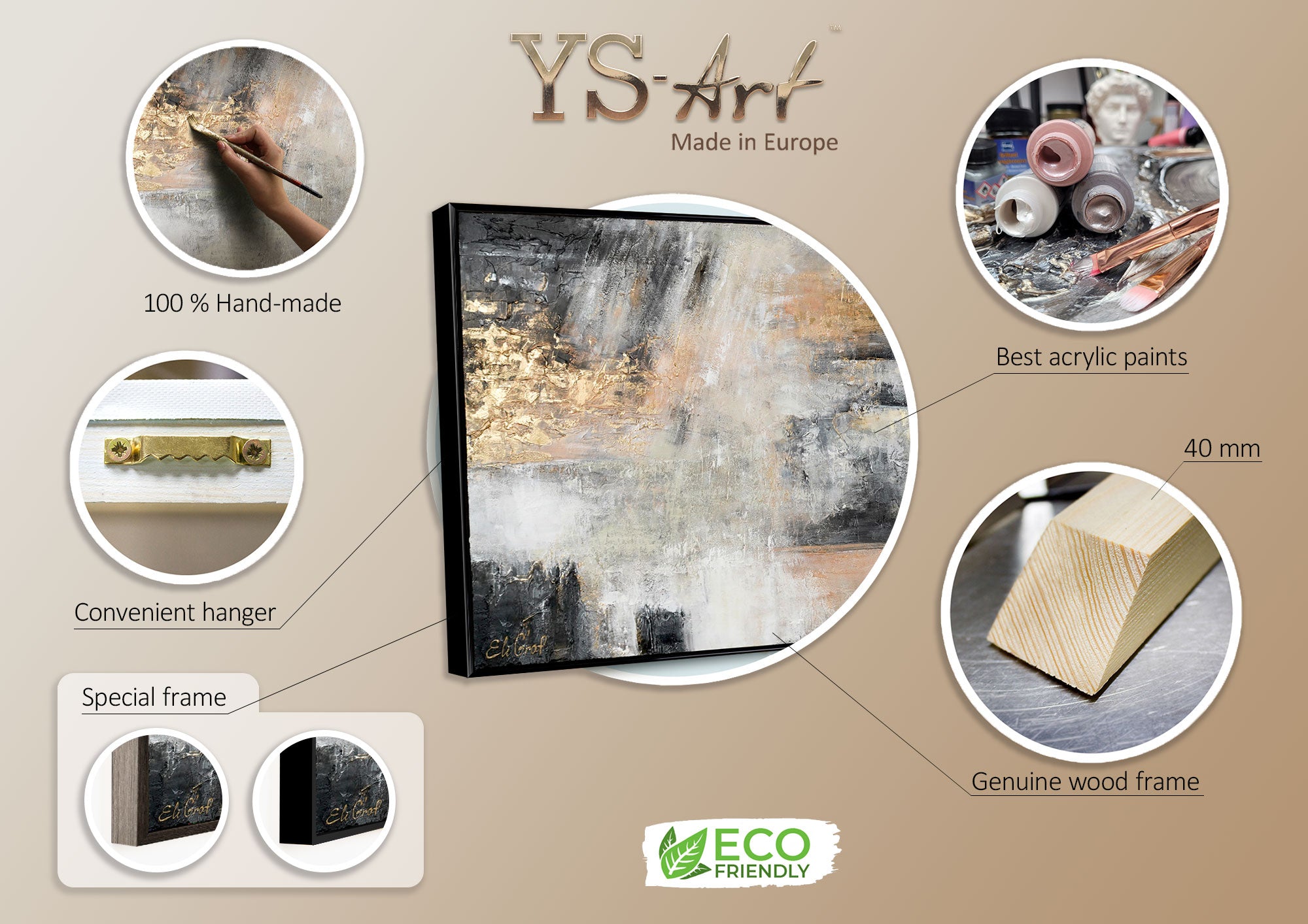 Ideal para salones, oficinas o como regalo exclusivo para amantes del arte. La pintura está montada sobre un marco de madera resistente y lista para colgar.