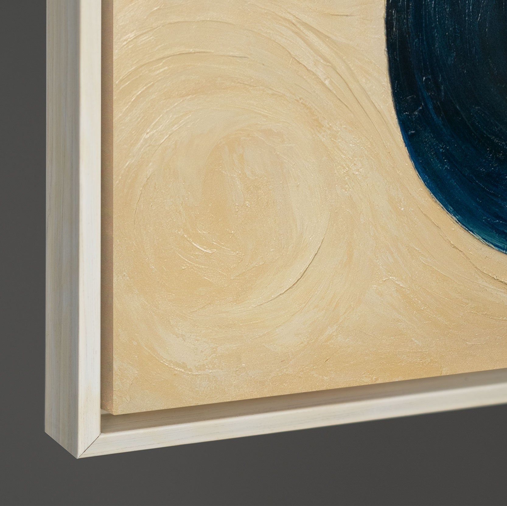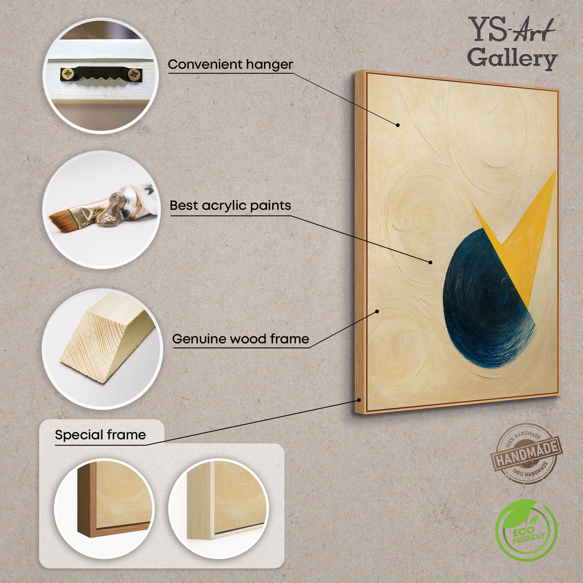 Este cuadro moderno sobre lienzo aporta energía fresca a tu hogar o oficina. Con su esquema de colores minimalista en azul, amarillo y beige, es fácil de combinar y se adapta perfectamente a decoraciones modernas, escandinavas o puristas.