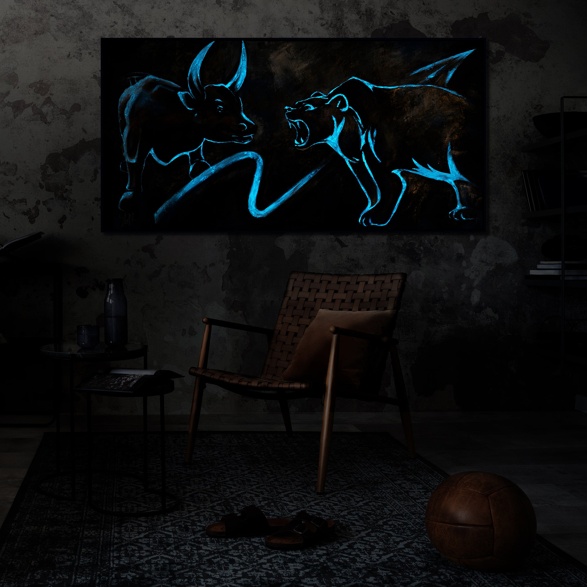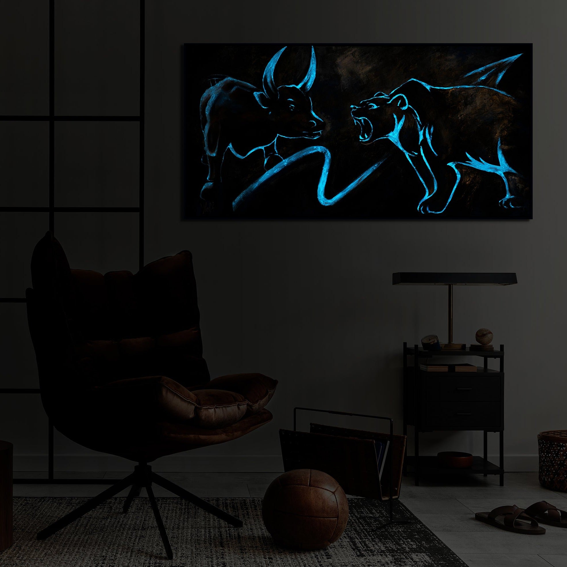Pintada con colores acrílicos y fluorescentes ecológicos. La pintura se monta en un lienzo sobre un bastidor de madera natural. Para garantizar que la obra de arte dure muchos años, la superficie está cubierta con un barniz acrílico a base de agua.