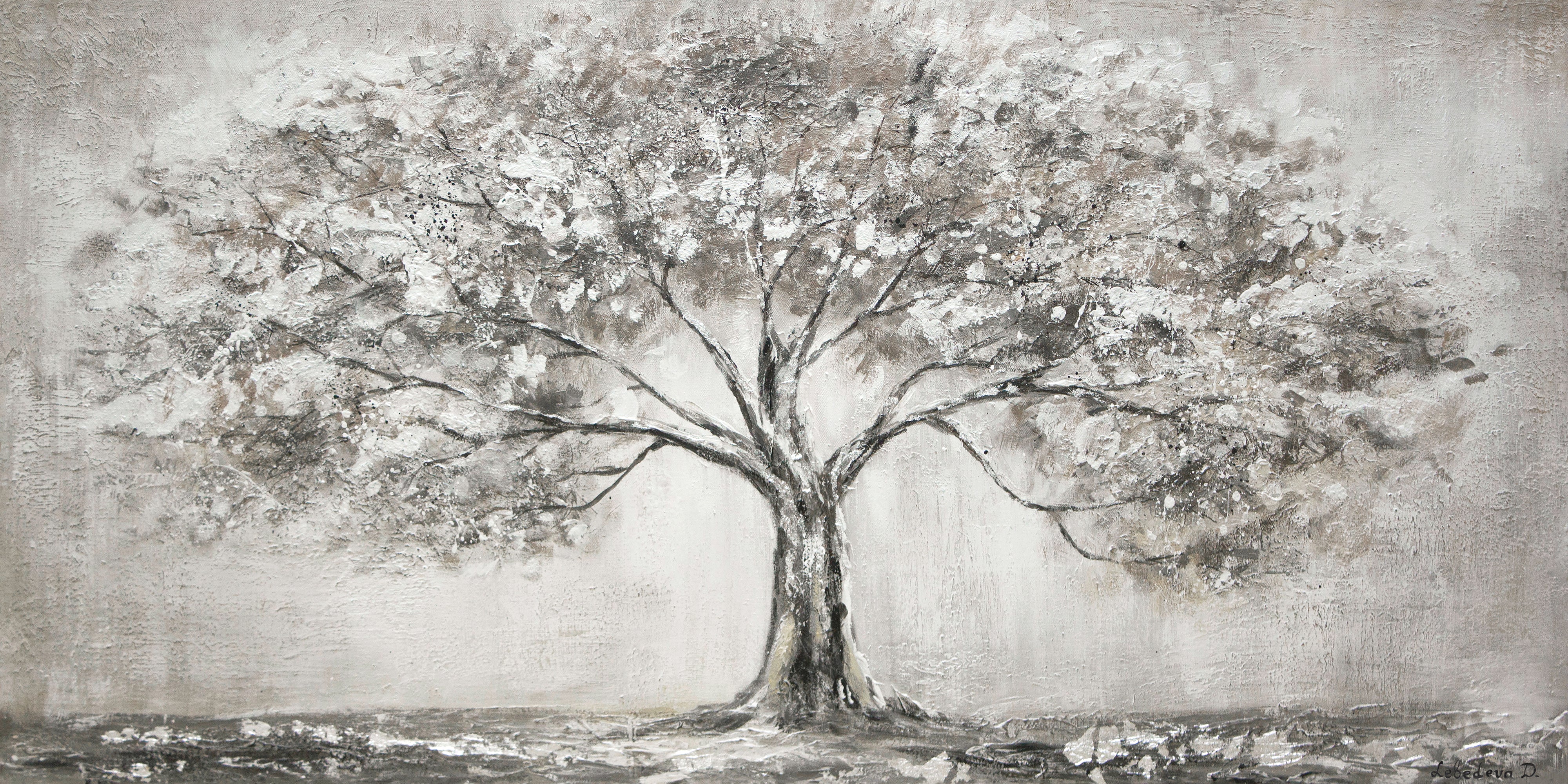Original Acrylbild auf Leinwand „Lebensbaum“ – Wanddekoration mit Baum-Motiv in dezenten Grautönen