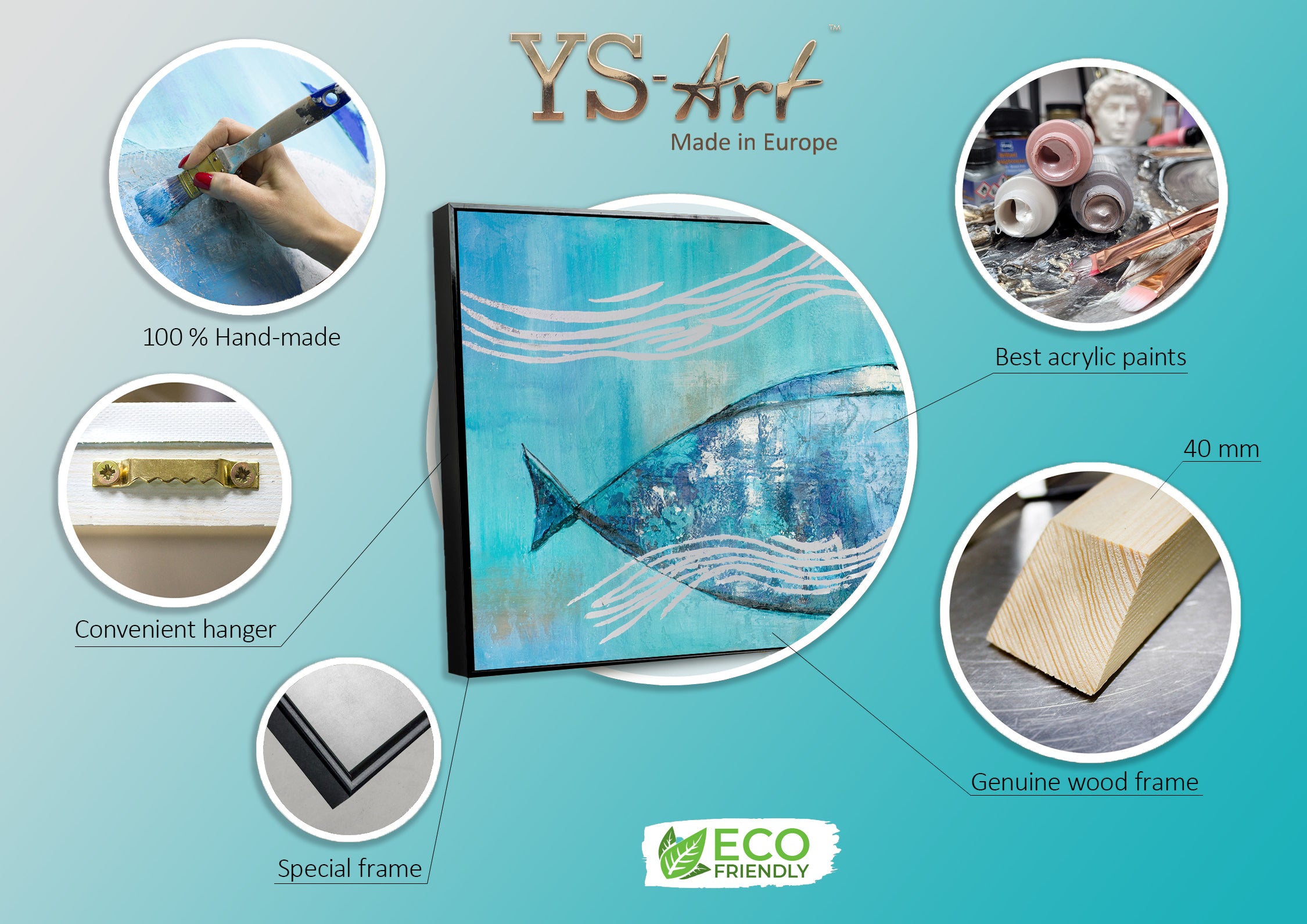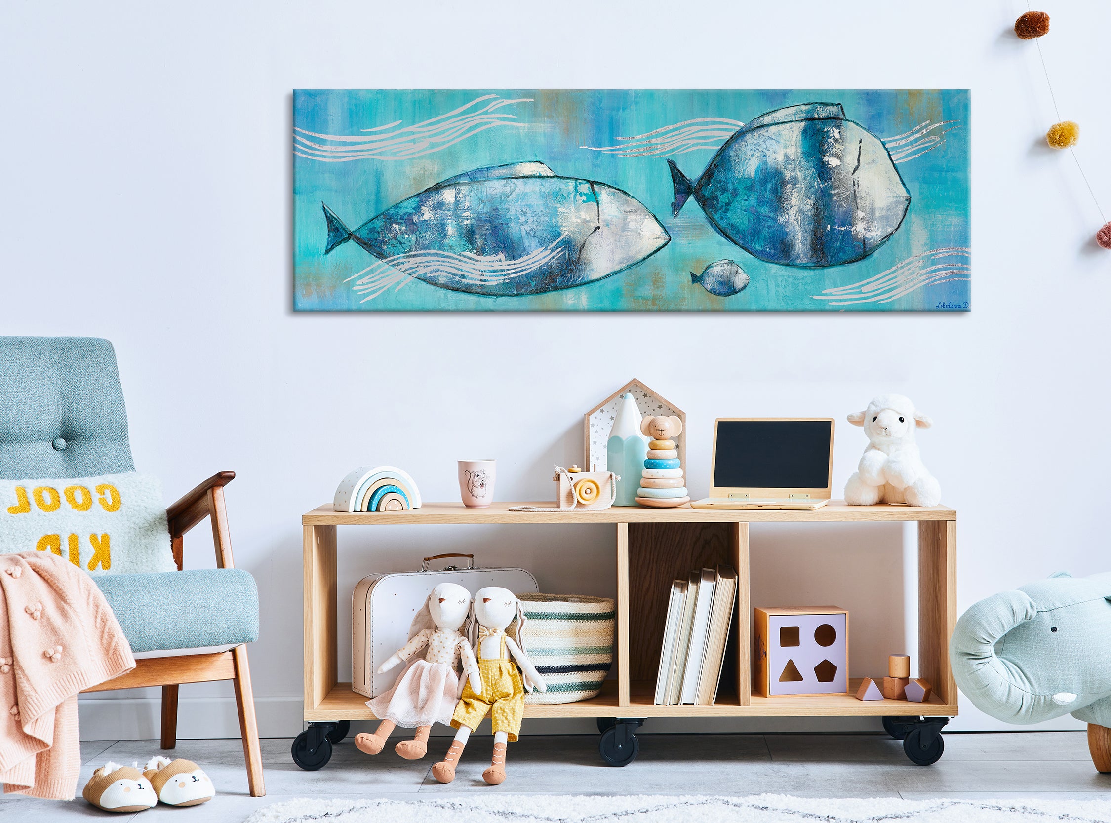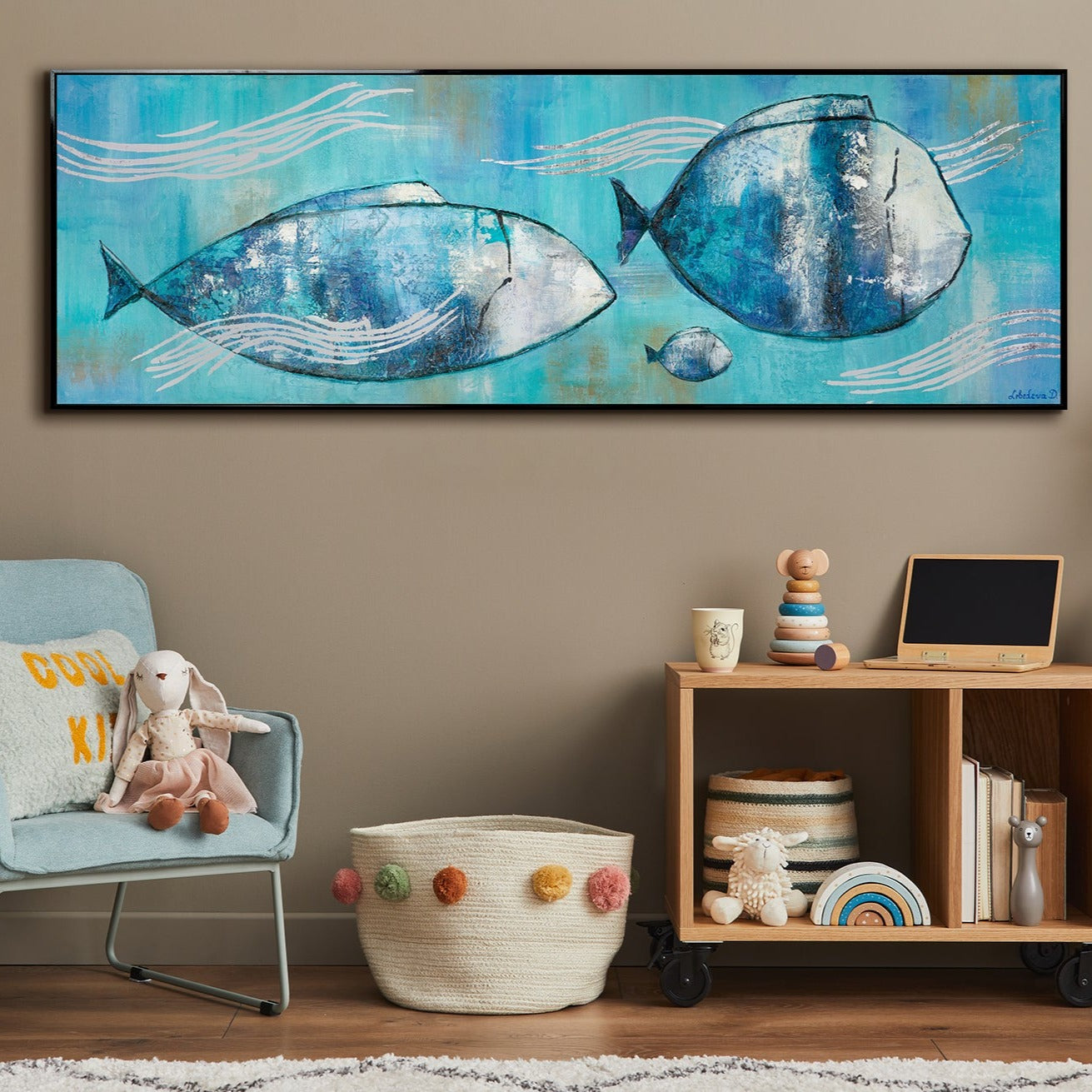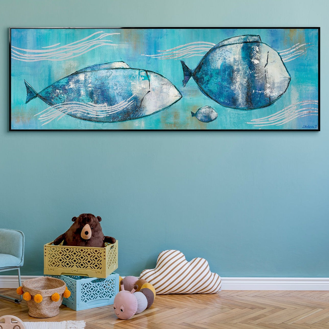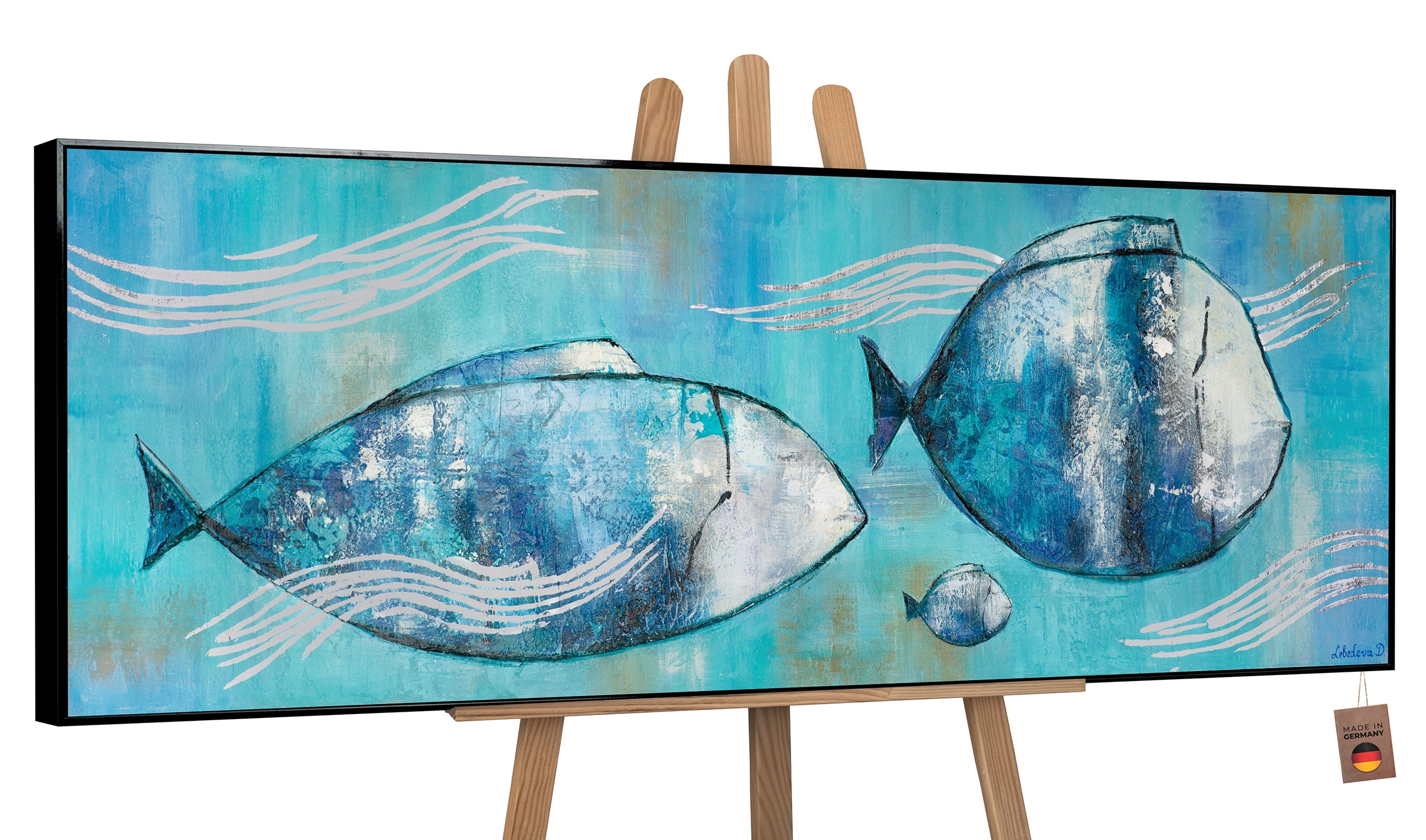 Sumérgete en el fascinante mundo submarino con este cuadro pintado a mano de peces sobre lienzo. Los tonos azules brillantes y la representación dinámica de los peces aportan un ambiente fresco y marino a tu hogar. Cada detalle de esta obra es elaborado de forma artesanal, lo que convierte a cada pieza en un auténtico original. Disfruta del envío gratuito directamente a tu domicilio.