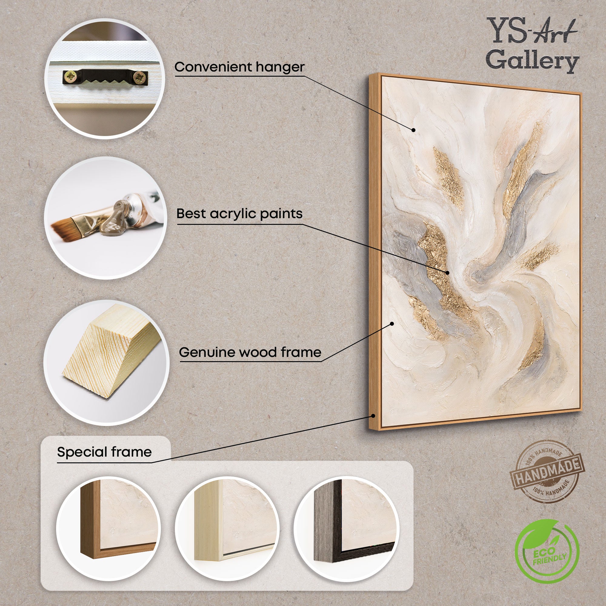 - Colores: Beige, gris, dorado