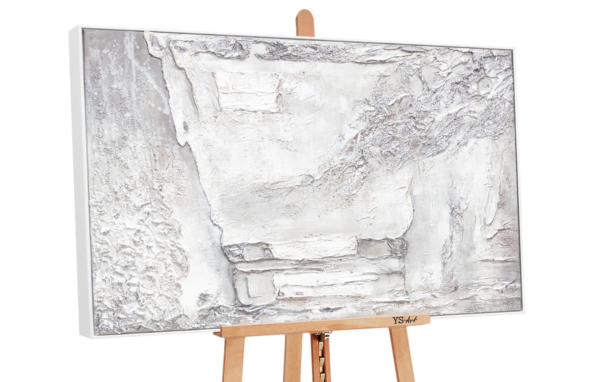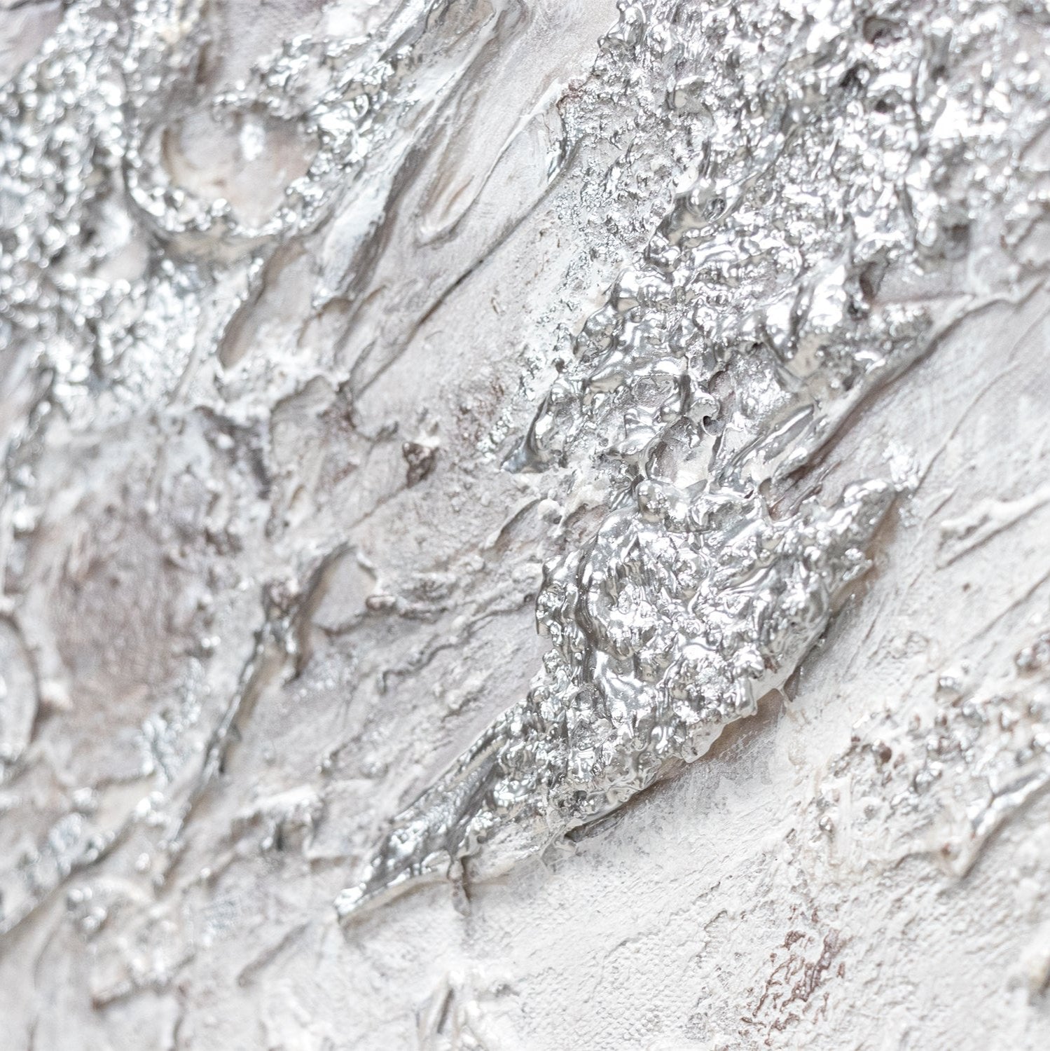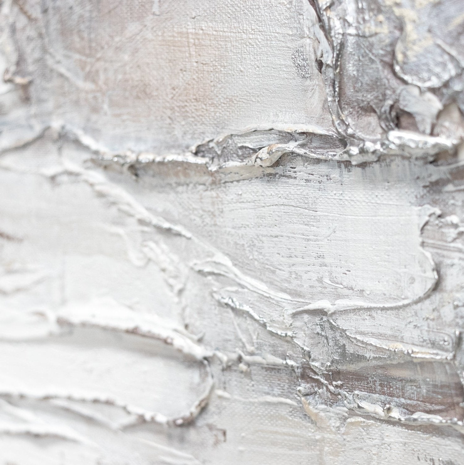 Pintura abstracta moderna sobre lienzo – Textura en blanco y plata