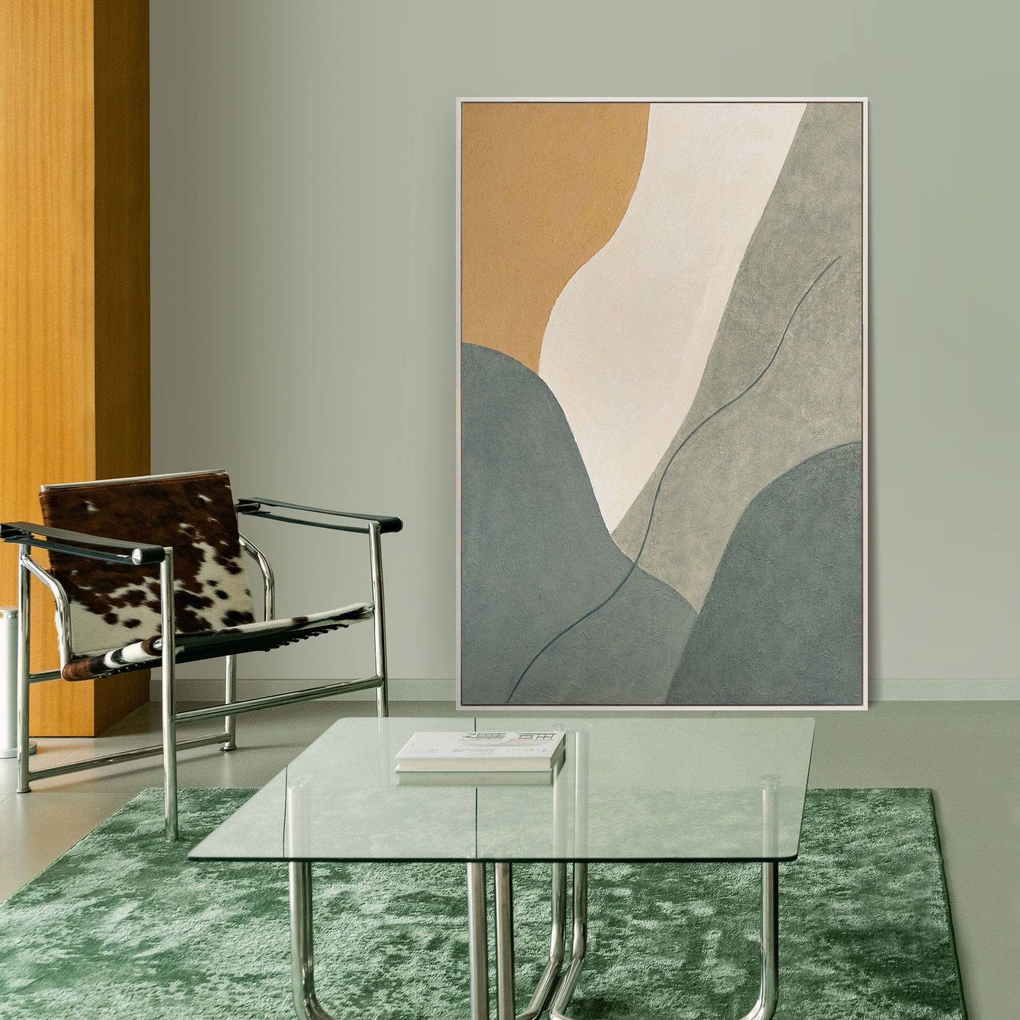 «Línea Eterna» representa tranquilidad, movimiento y elegancia orgánica. Sus colores armoniosos y su fina textura la convierten en la decoración de pared perfecta para quienes aprecian la estética natural y el diseño moderno.