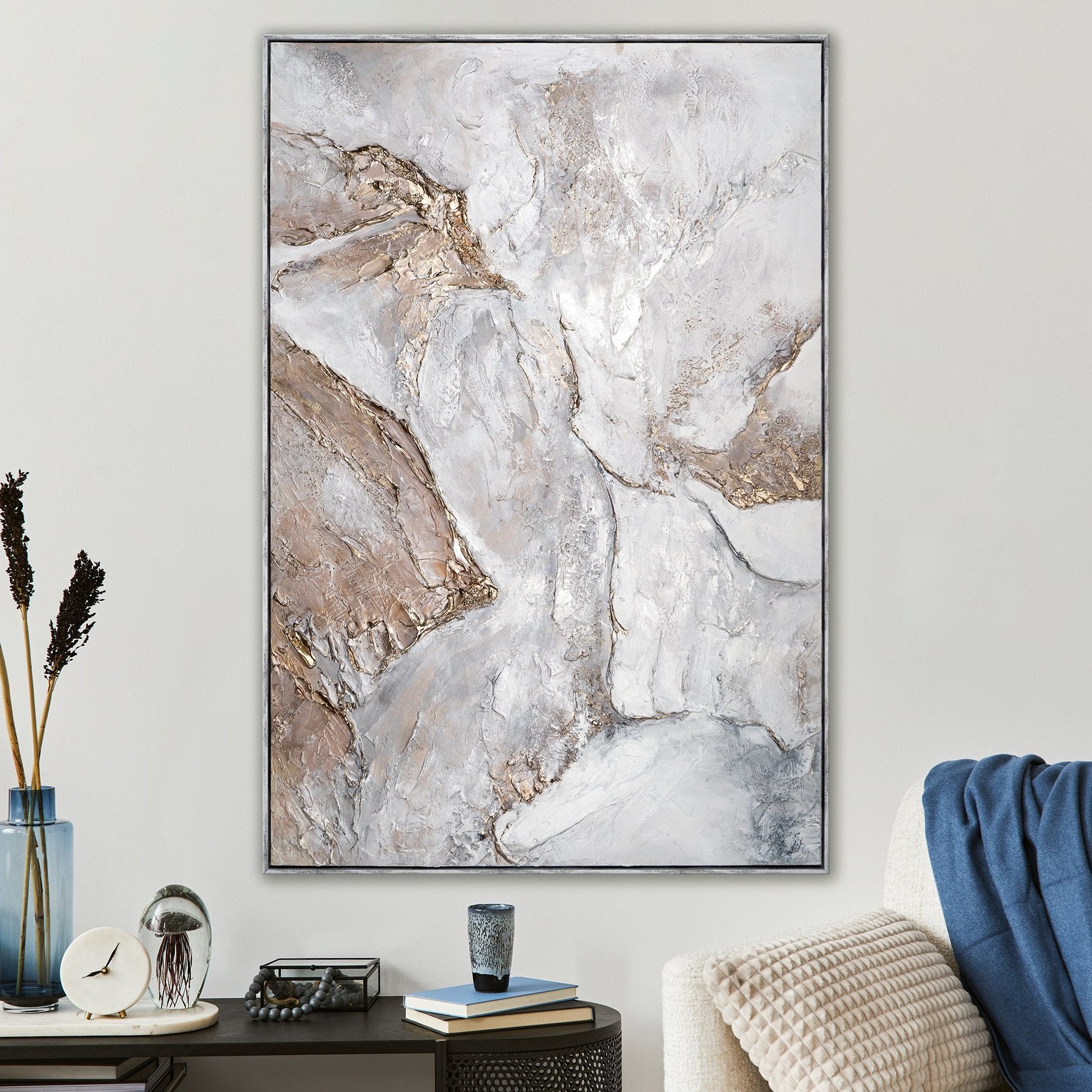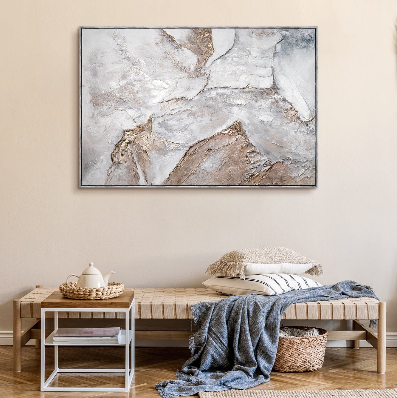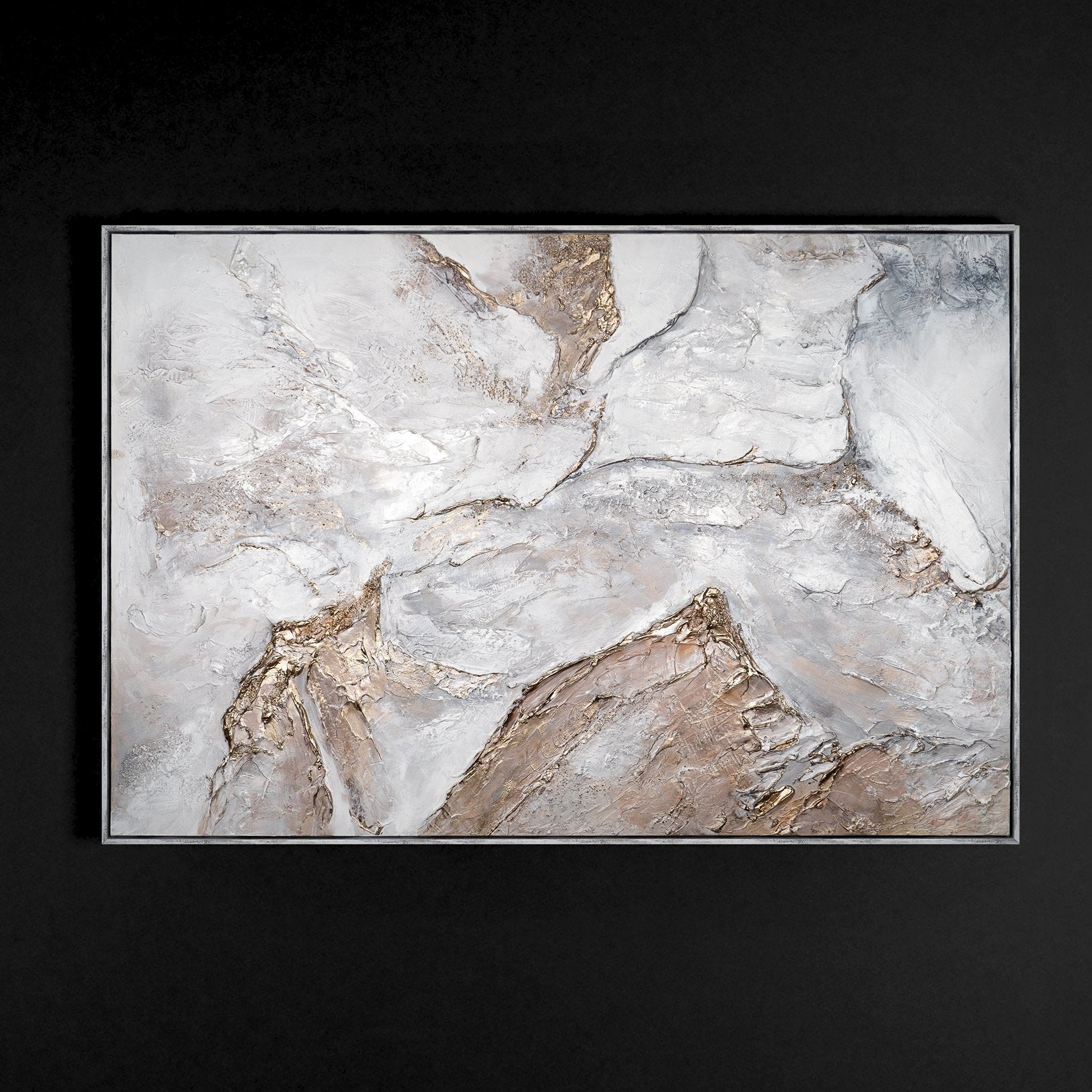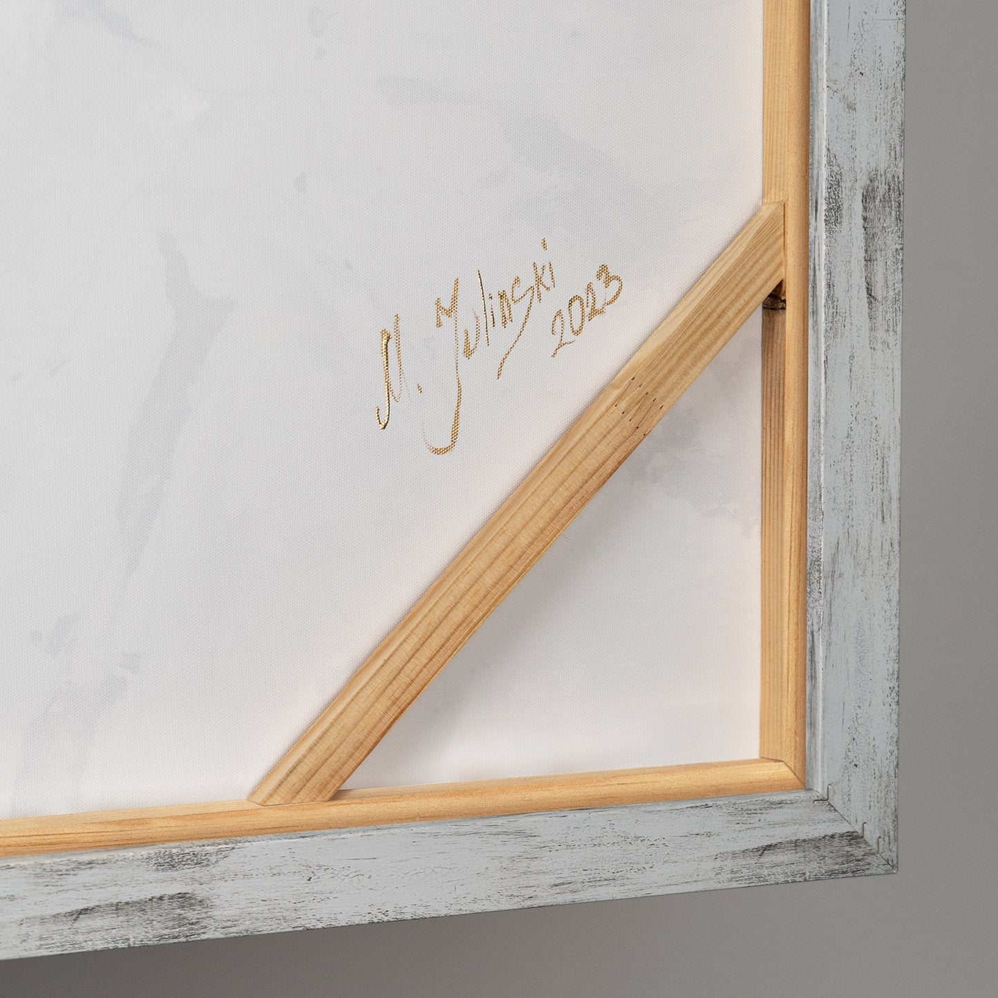 Cuadro acrílico abstracto en plata y oro con marco Norden