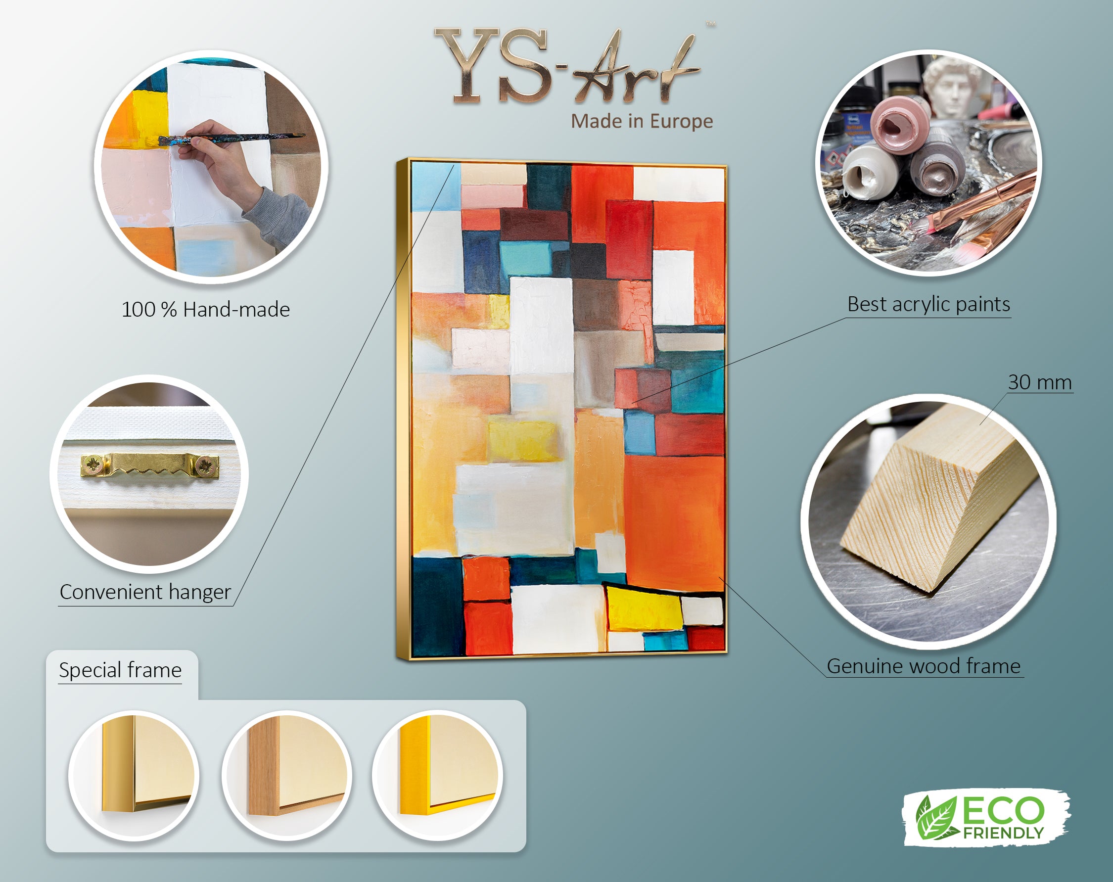 Descubre la pintura acrílica abstracta perfecta para tu hogar con este exclusivo y hecho a mano acrílico. Cada pieza es única, creada con pasión y precisión en lienzo de alta calidad. Los cuadrados abstractos y coloridos se combinan para formar un patrón moderno impresionante que convierte este cuadro en una verdadera atracción en cualquier salón. Con las medidas perfectas para colocar sobre el sofá o como elemento central de tu decoración de pared, esta pintura es una adición valiosa a cualquier decoración.