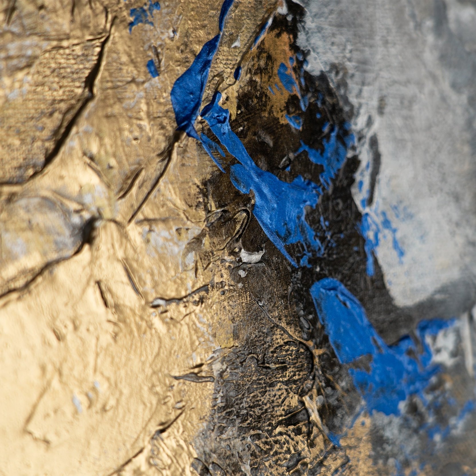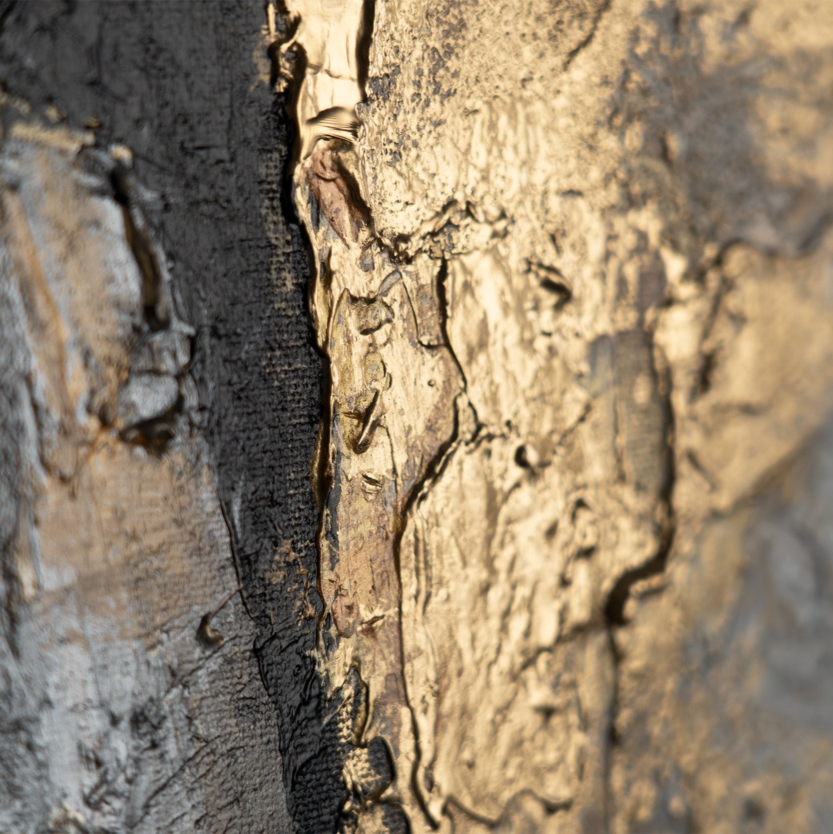 Pintura acrílica abstracta moderna con acentos dorados – “Contraste Dorado”