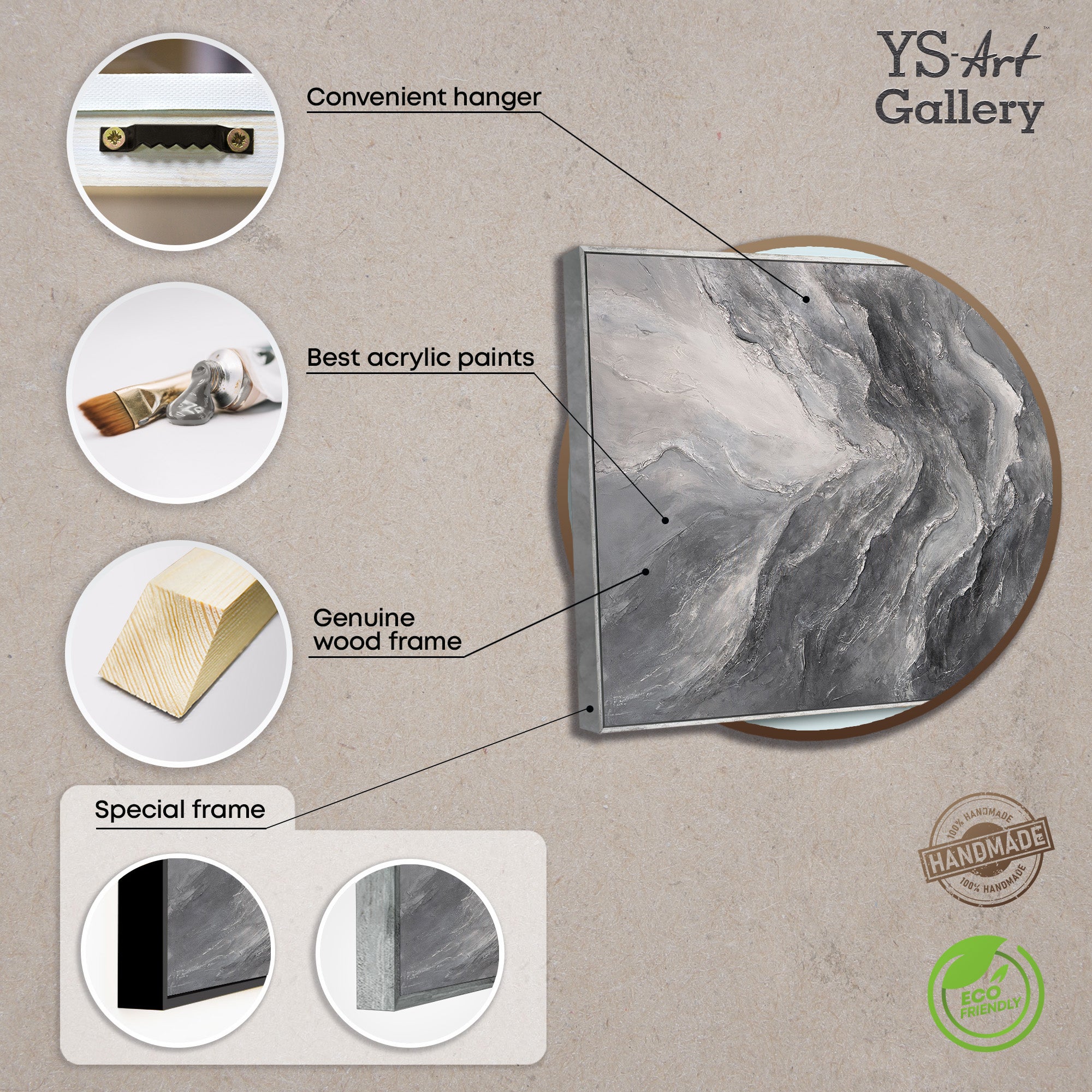 - Pintado a mano: Sí, cada pintura acrílica es única