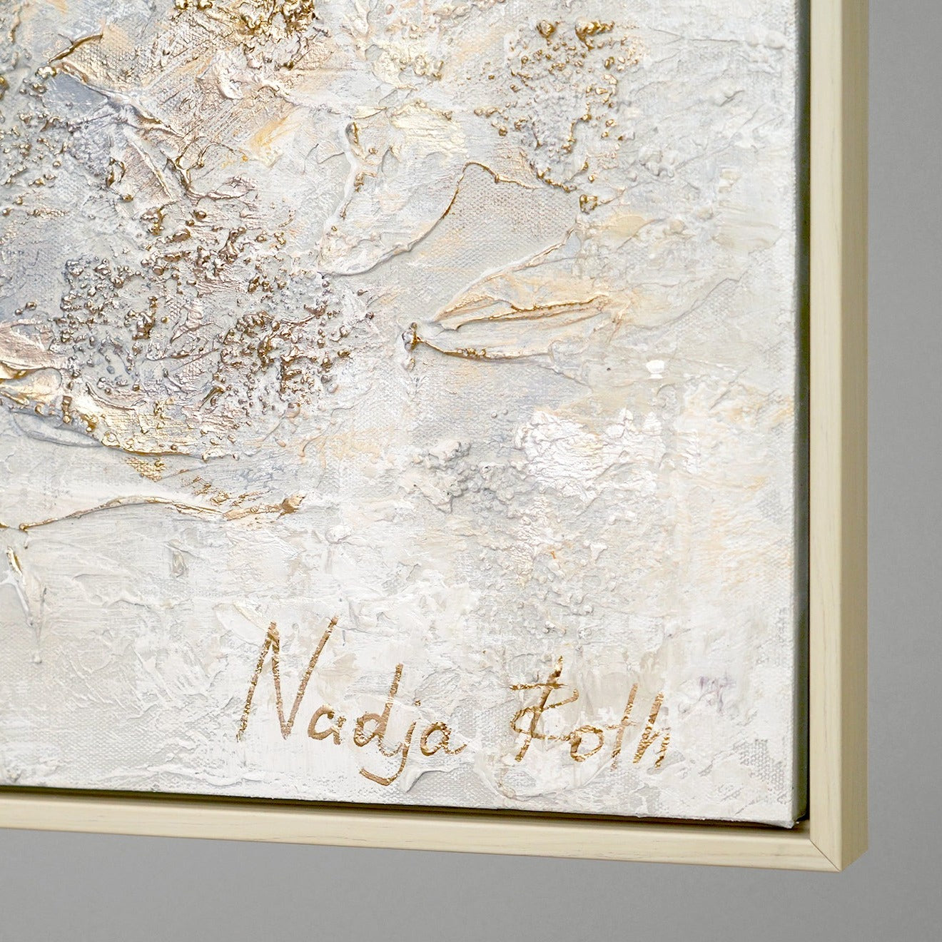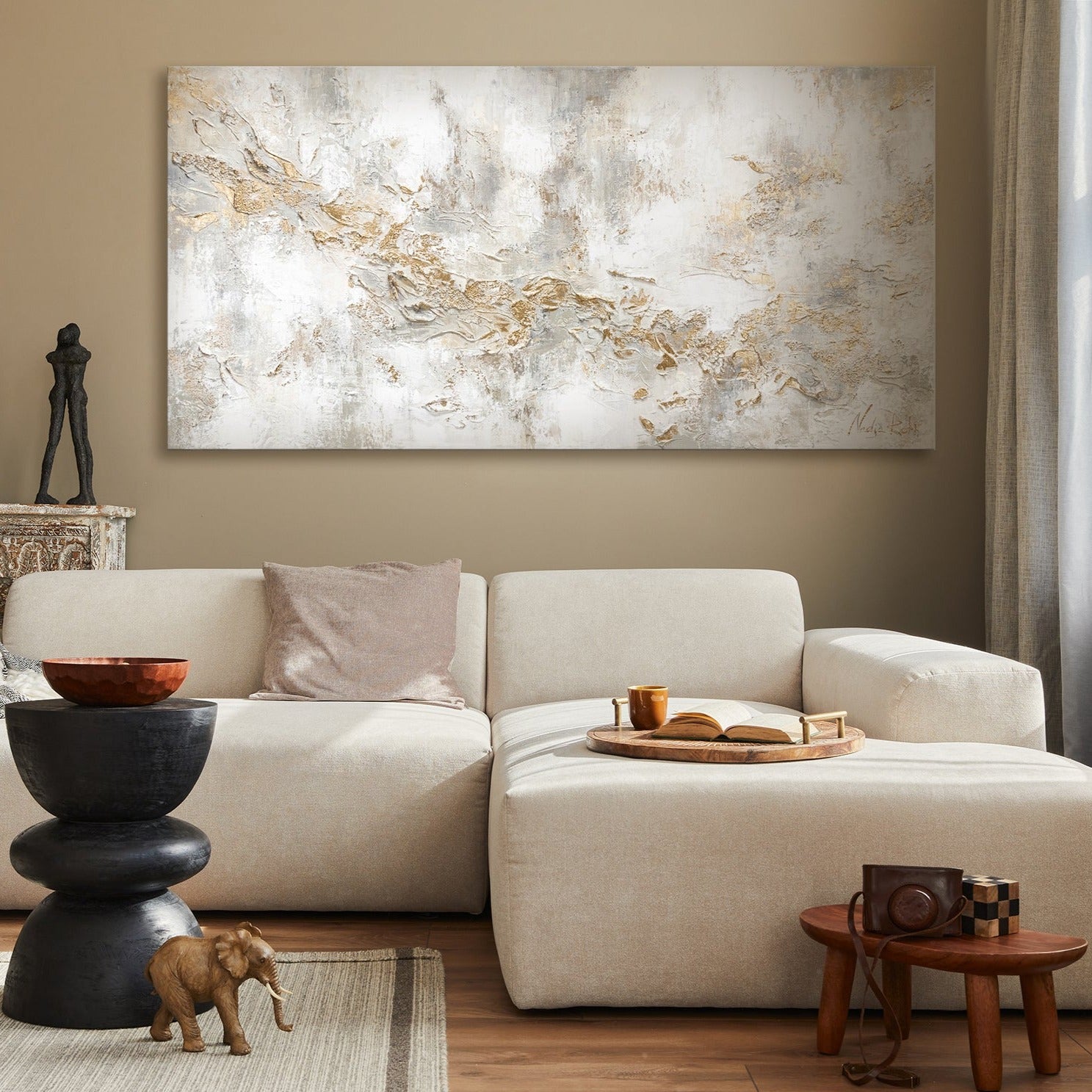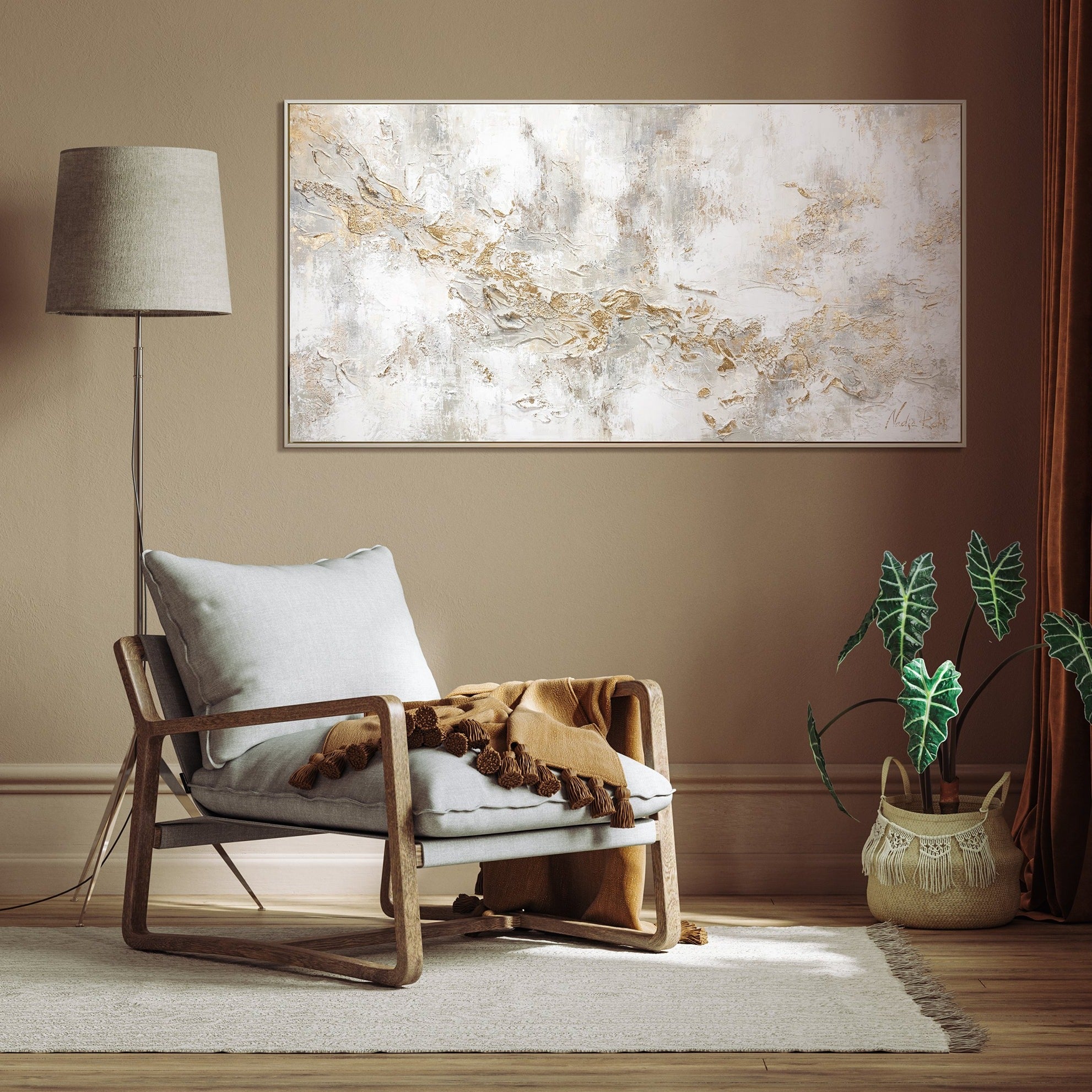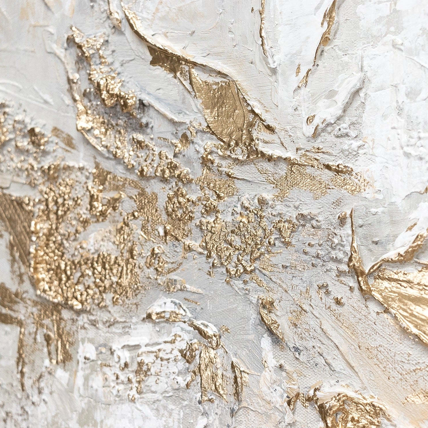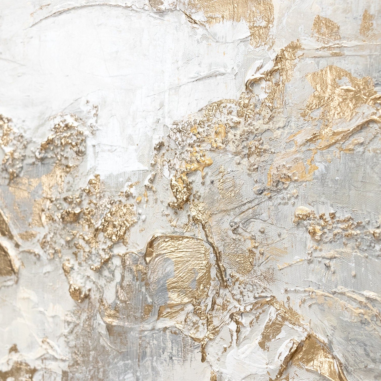 Sumérgete en la exquisita belleza del arte abstracto con esta pintura hecha a mano. Los delicados detalles dorados y las texturas complejas aportan un toque especial a tu espacio. Esta obra de arte está completamente hecha a mano y es una pieza única. Te ofrecemos envío gratuito directamente a tu hogar.