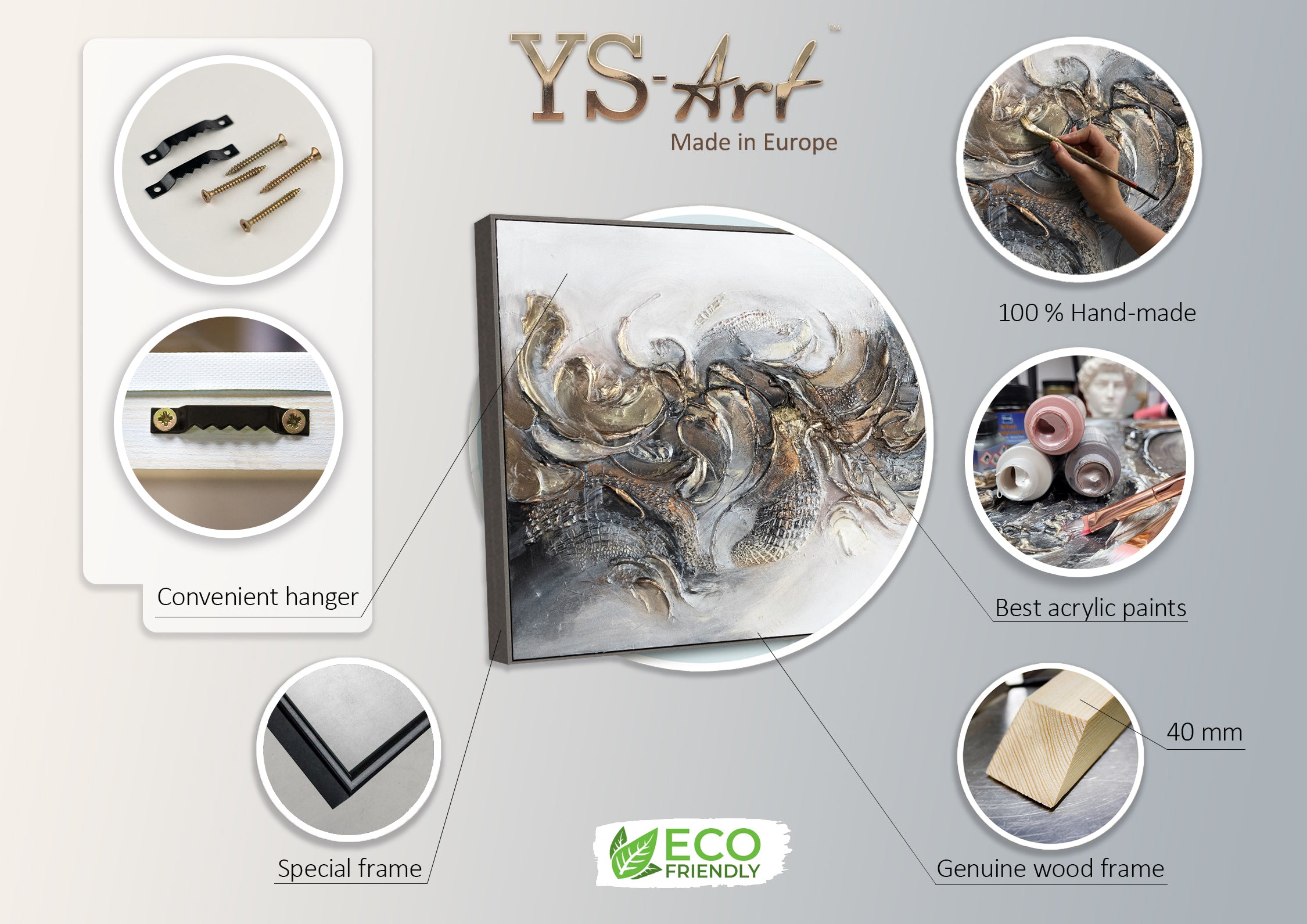 Para nuestras coloridas pinturas acrílicas, utilizamos solo materiales de alta calidad que cumplen con los estándares internacionales. Todos nuestros cuadros pueden ser pintados en otros tamaños por nuestros artistas.