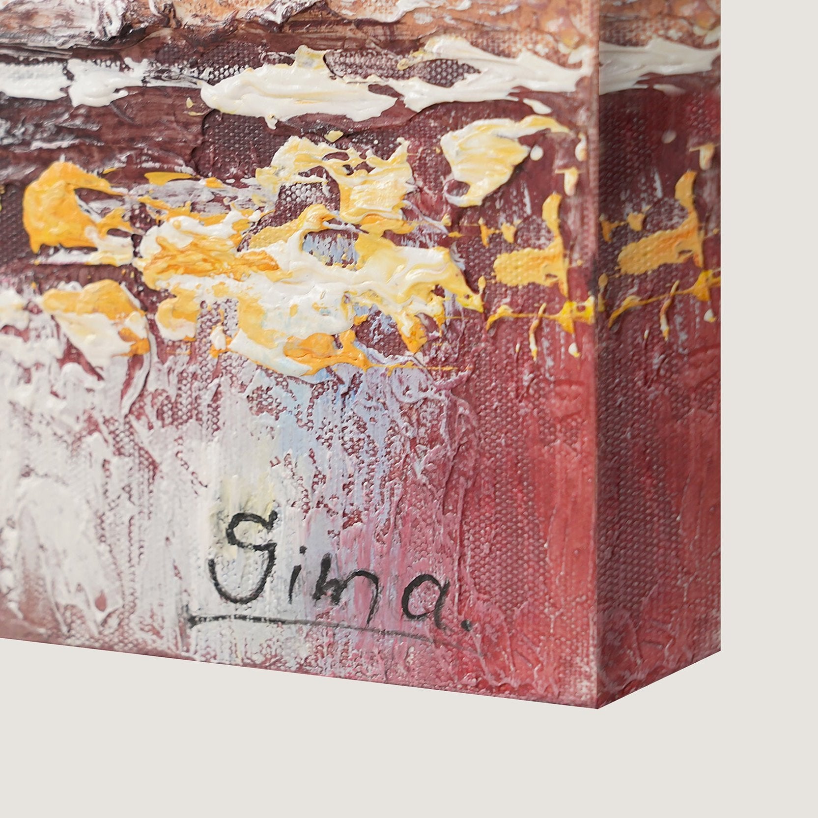 Pintura acrílica hecha a mano – Paisaje urbano abstracto en tonos cálidos