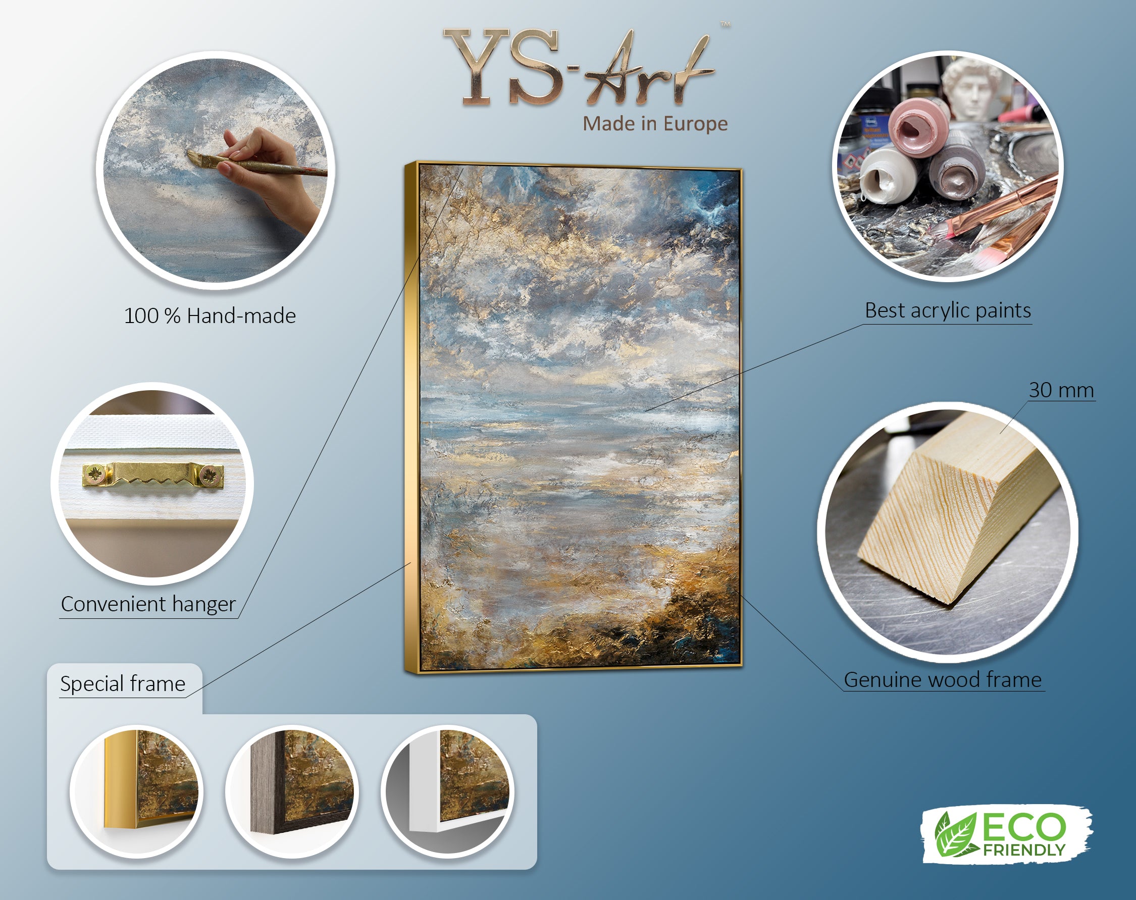 Sumérgete en el mundo del arte con esta exclusiva pintura acrílica hecha a mano de un paisaje abstracto. Cada pincelada ha sido cuidadosamente colocada para crear profundidad y textura, lo que convierte a esta obra en una verdadera pieza central. El marco que rodea la pintura resalta los colores vibrantes y la impresionante textura, y la hace lista para colgar en tu pared.