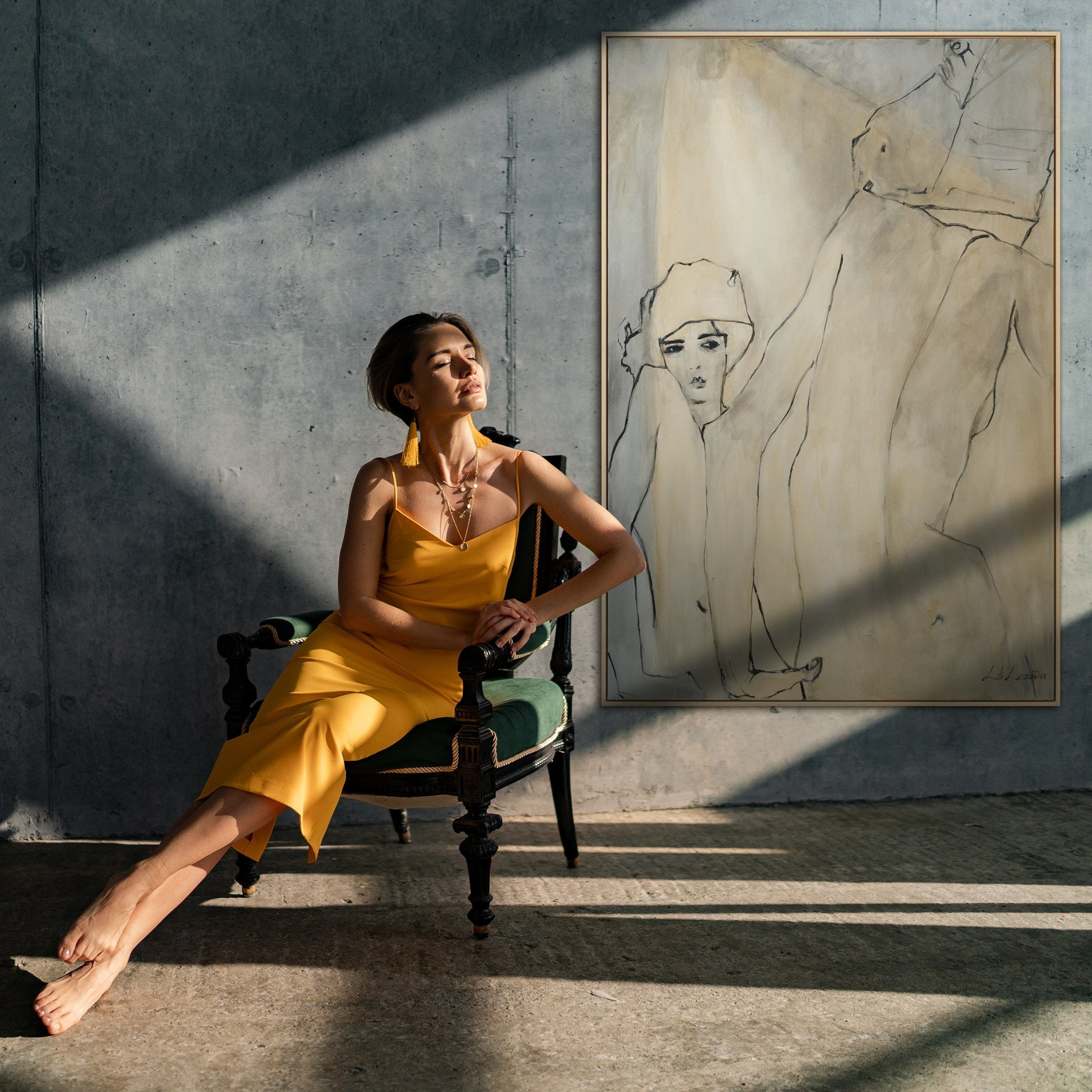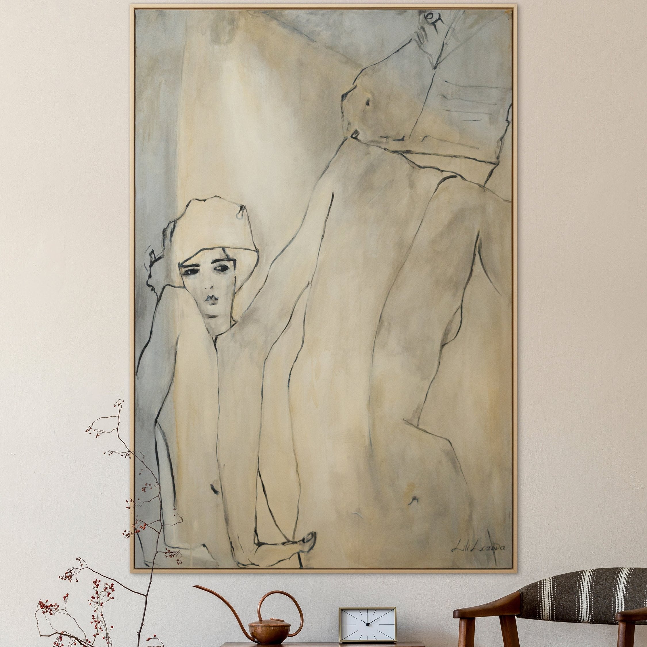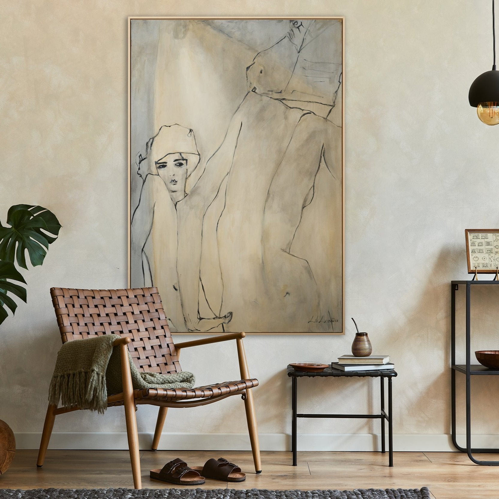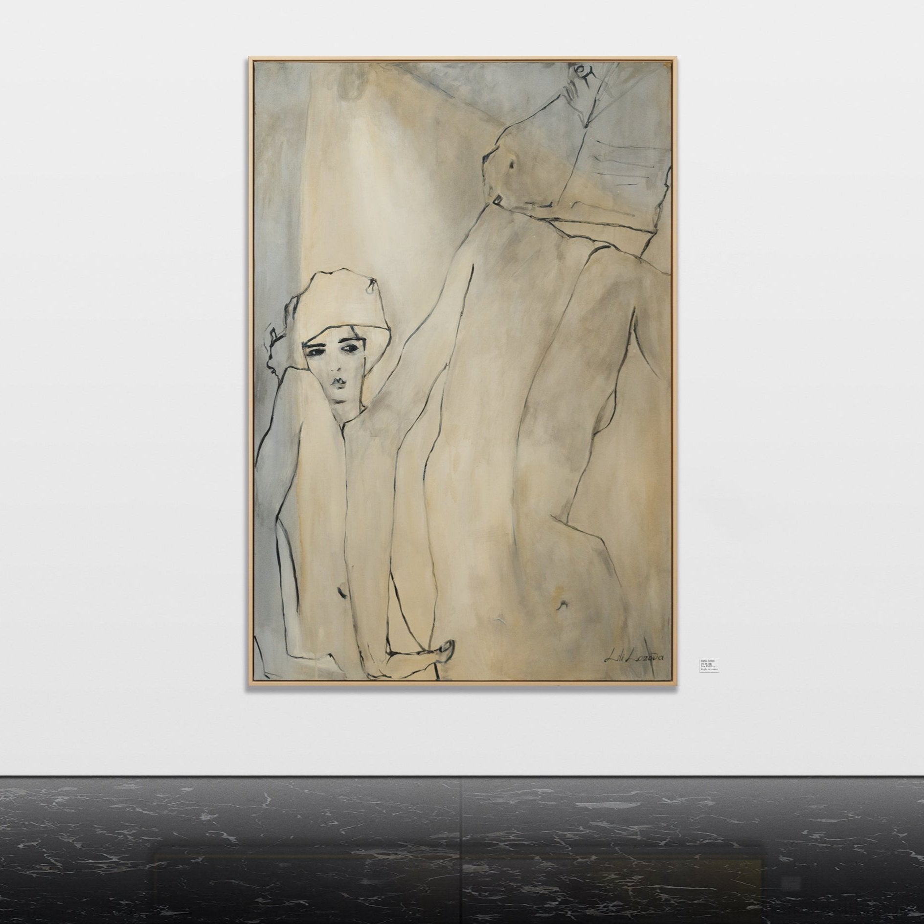 Esta pintura acrílica hecha a mano representa una figura femenina abstracta, creada con líneas delicadas y colores suaves que transmiten serenidad y elegancia. Las formas fluidas y la paleta minimalista hacen de esta obra un acento perfecto para interiores modernos.