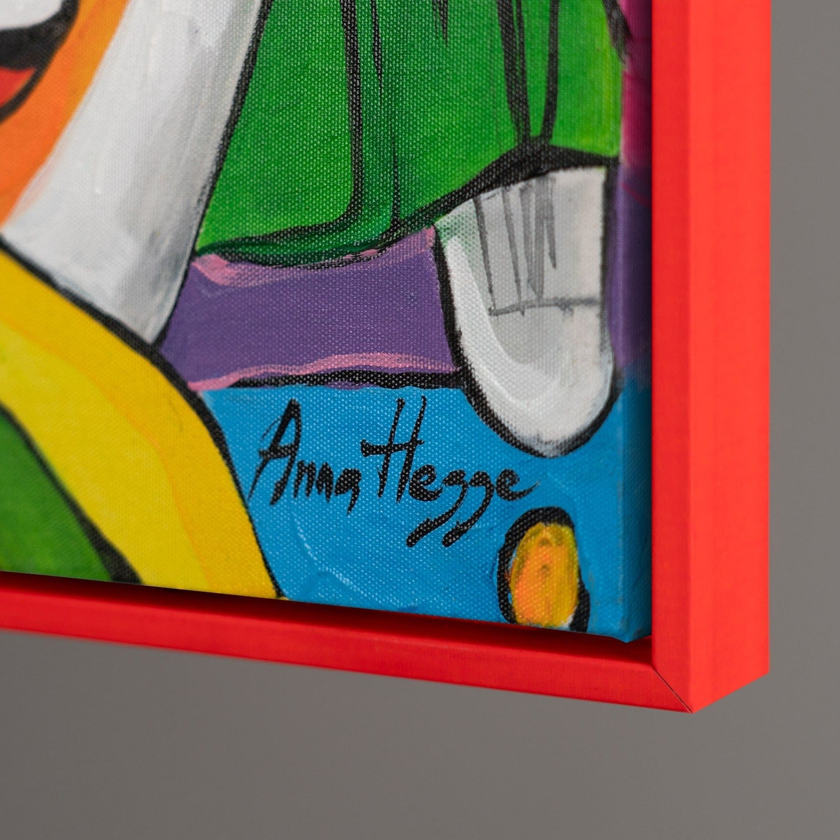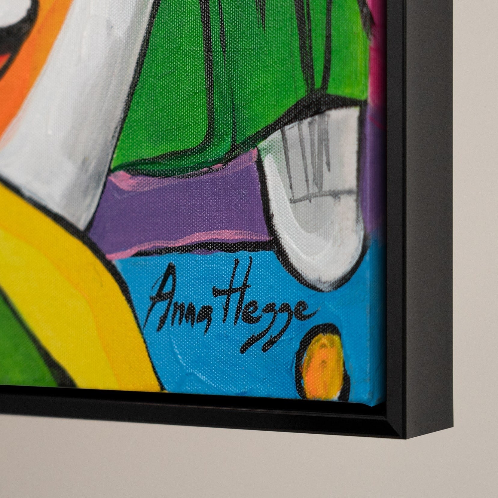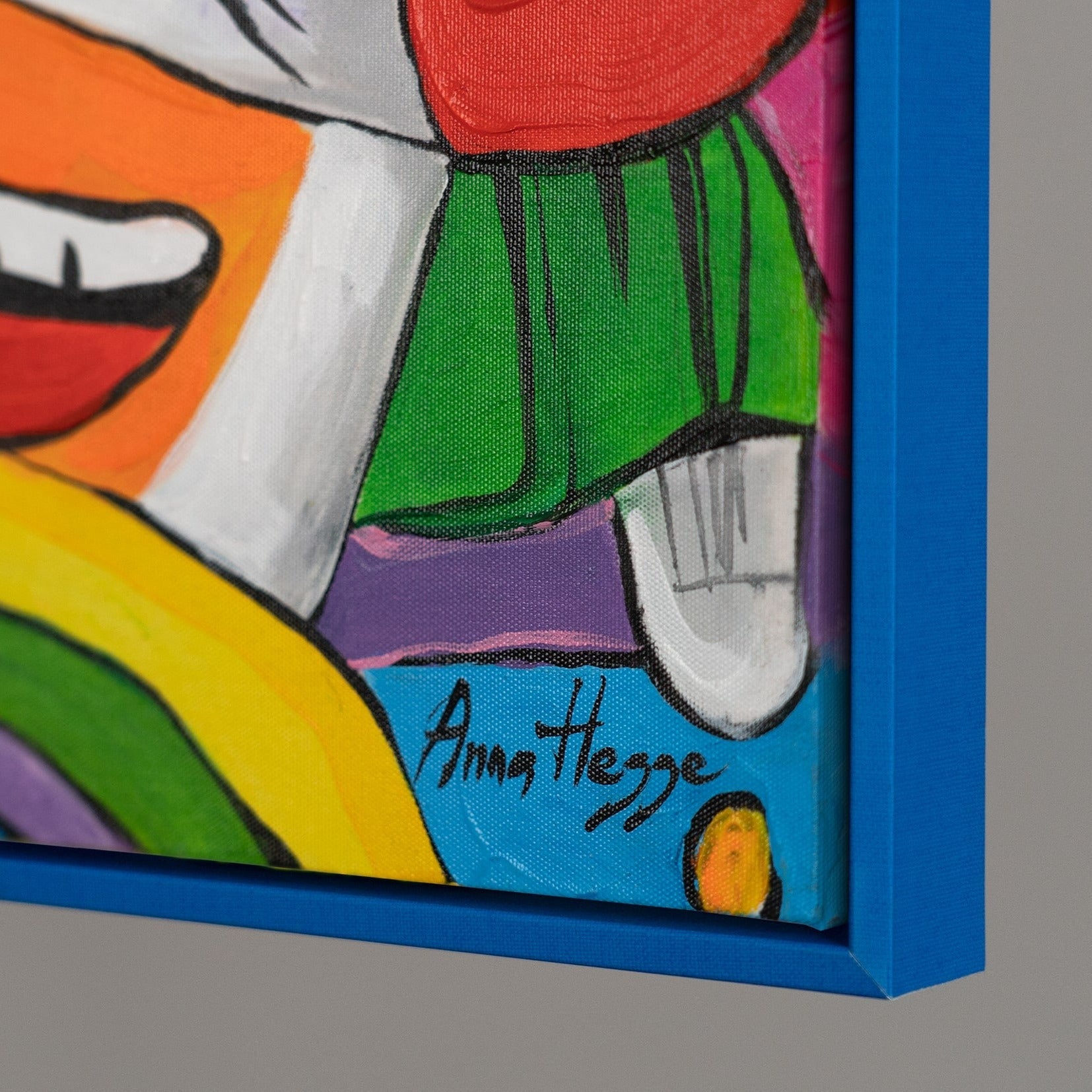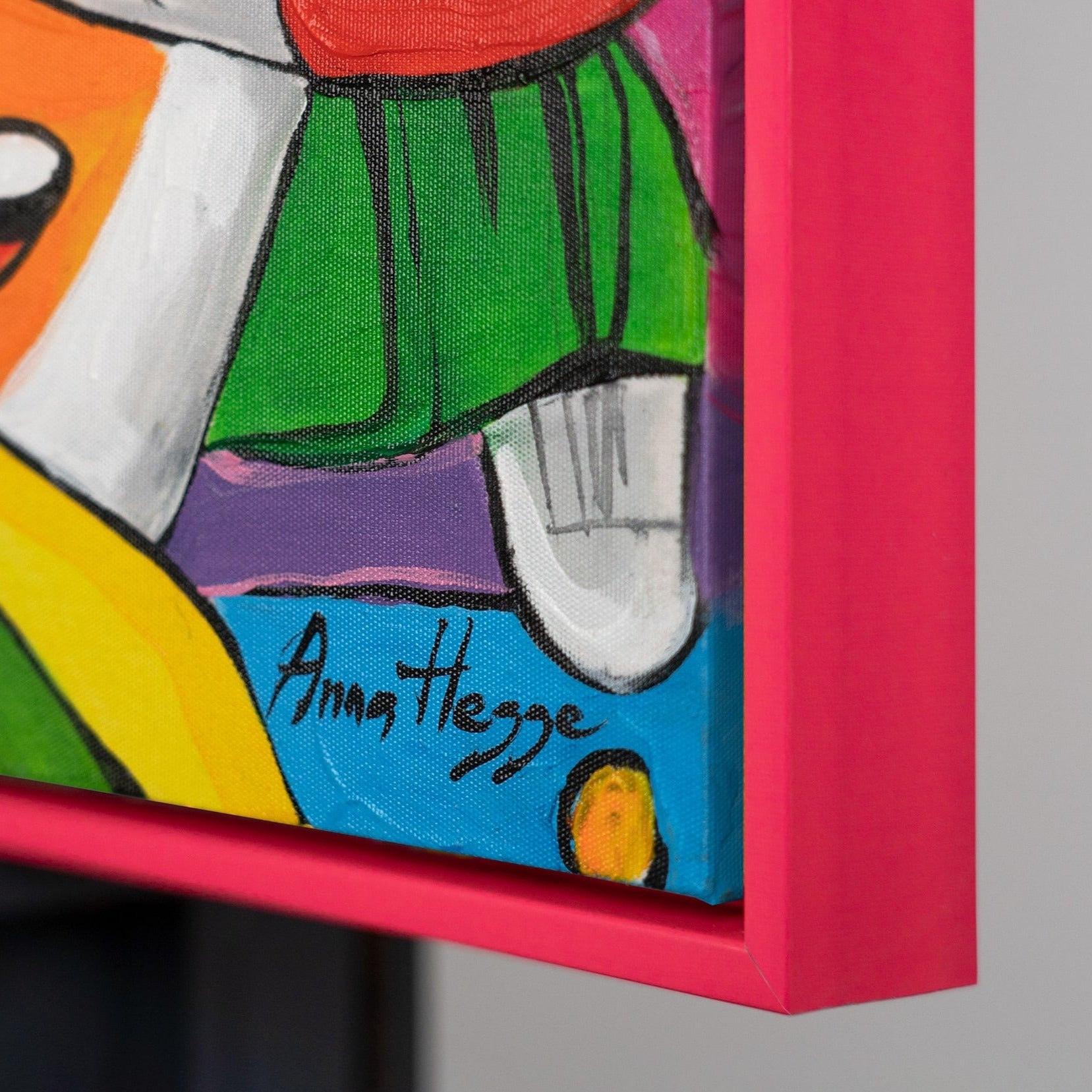 Cuadro abstracto con marco "Mundo colorido" personajes vibrantes