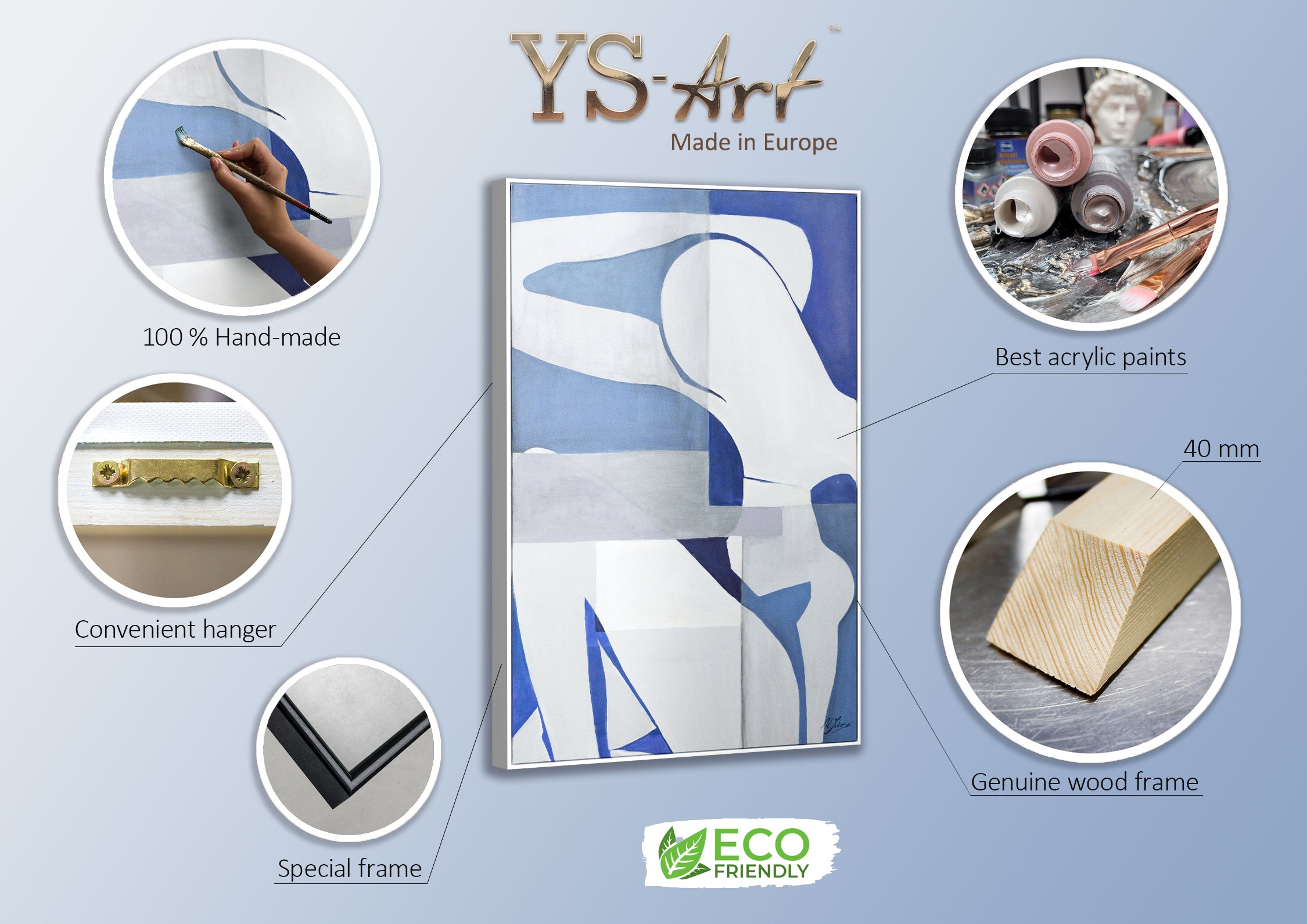 - Cada cuadro de nuestra serie YS Art Premium es pintado a mano, firmado por el artista y viene con un certificado de autenticidad. Todo el proceso es artesanal: desde la fabricación del bastidor, el tensado del lienzo de alta calidad, hasta la pintura y el embalaje seguro.