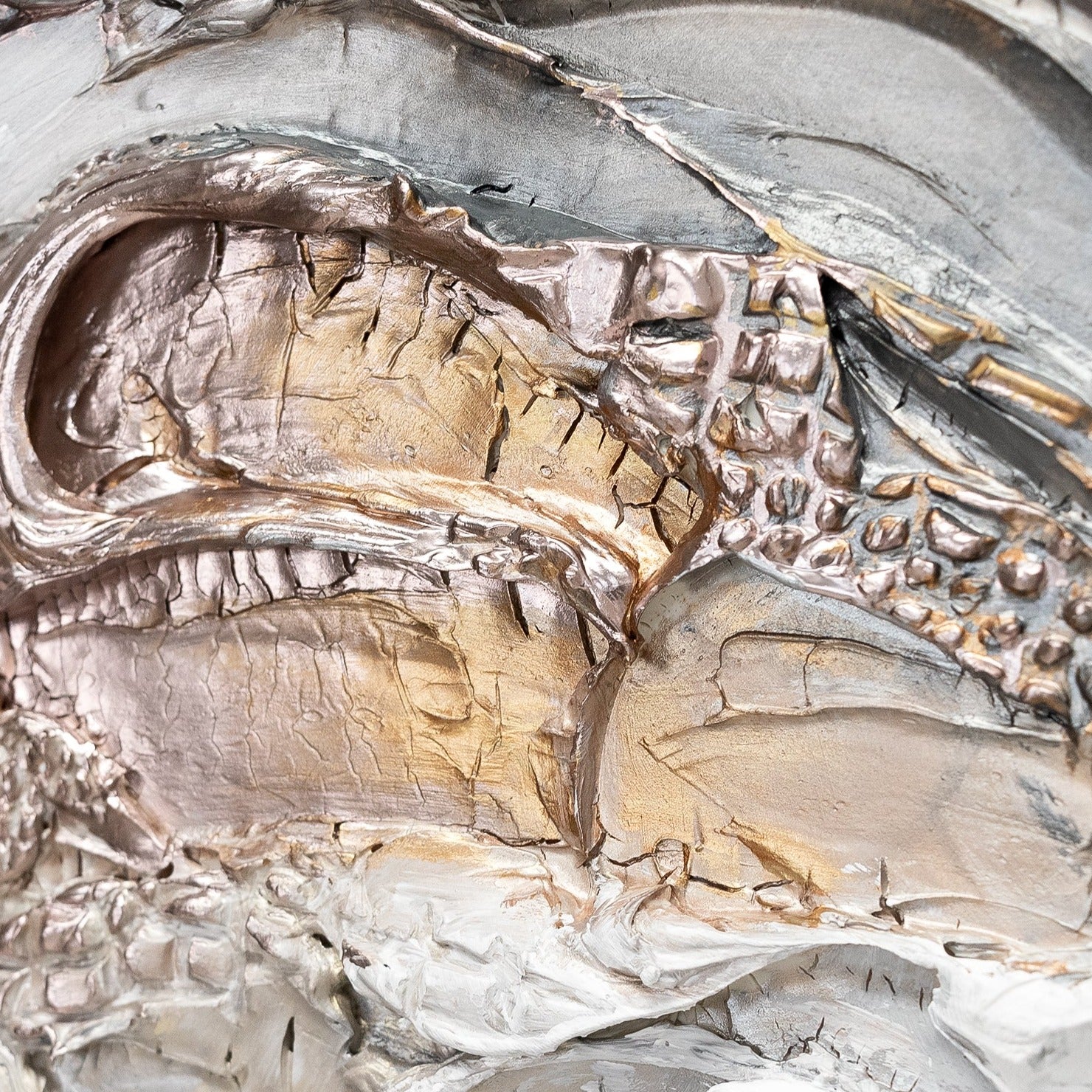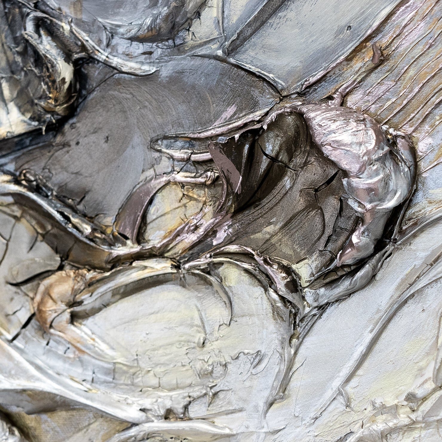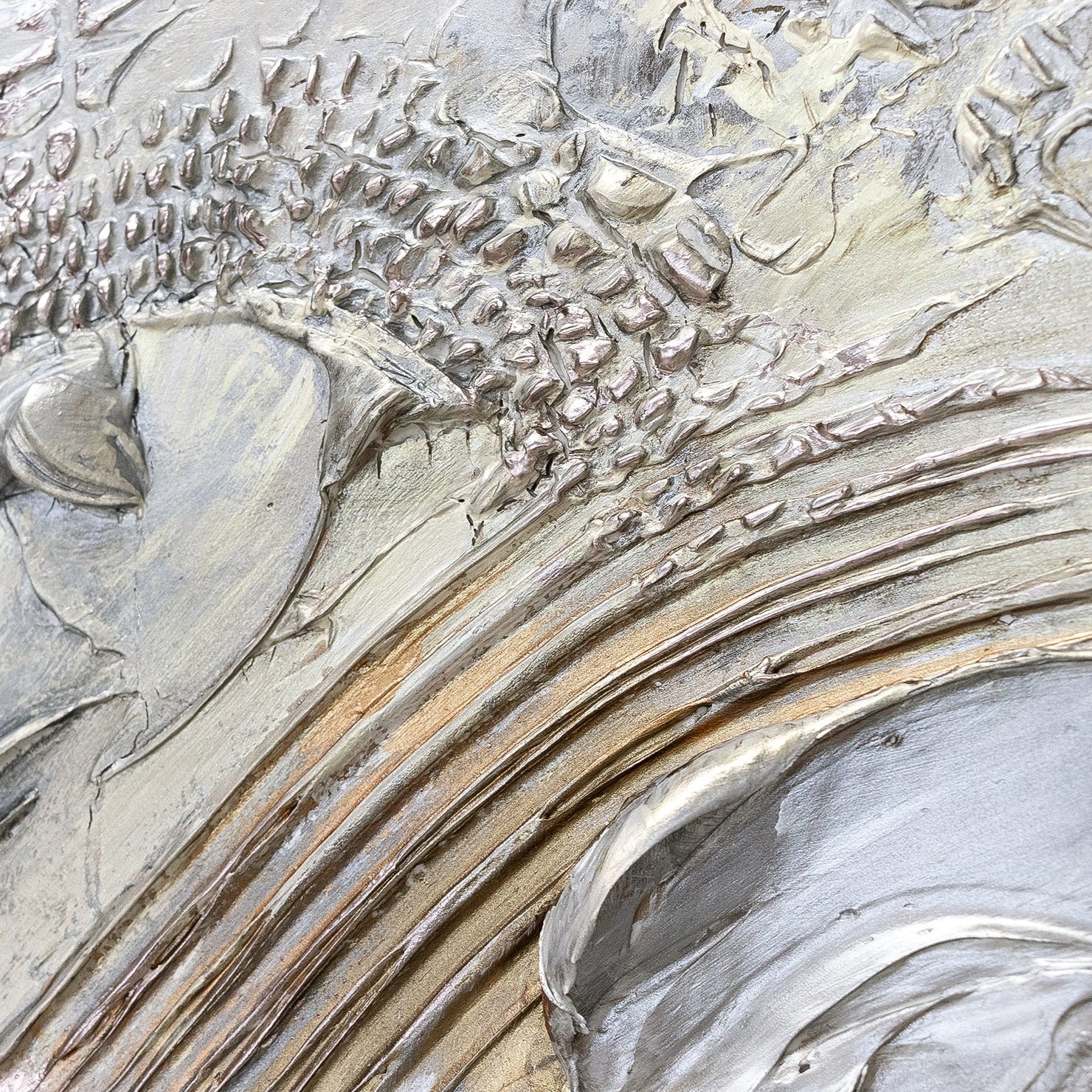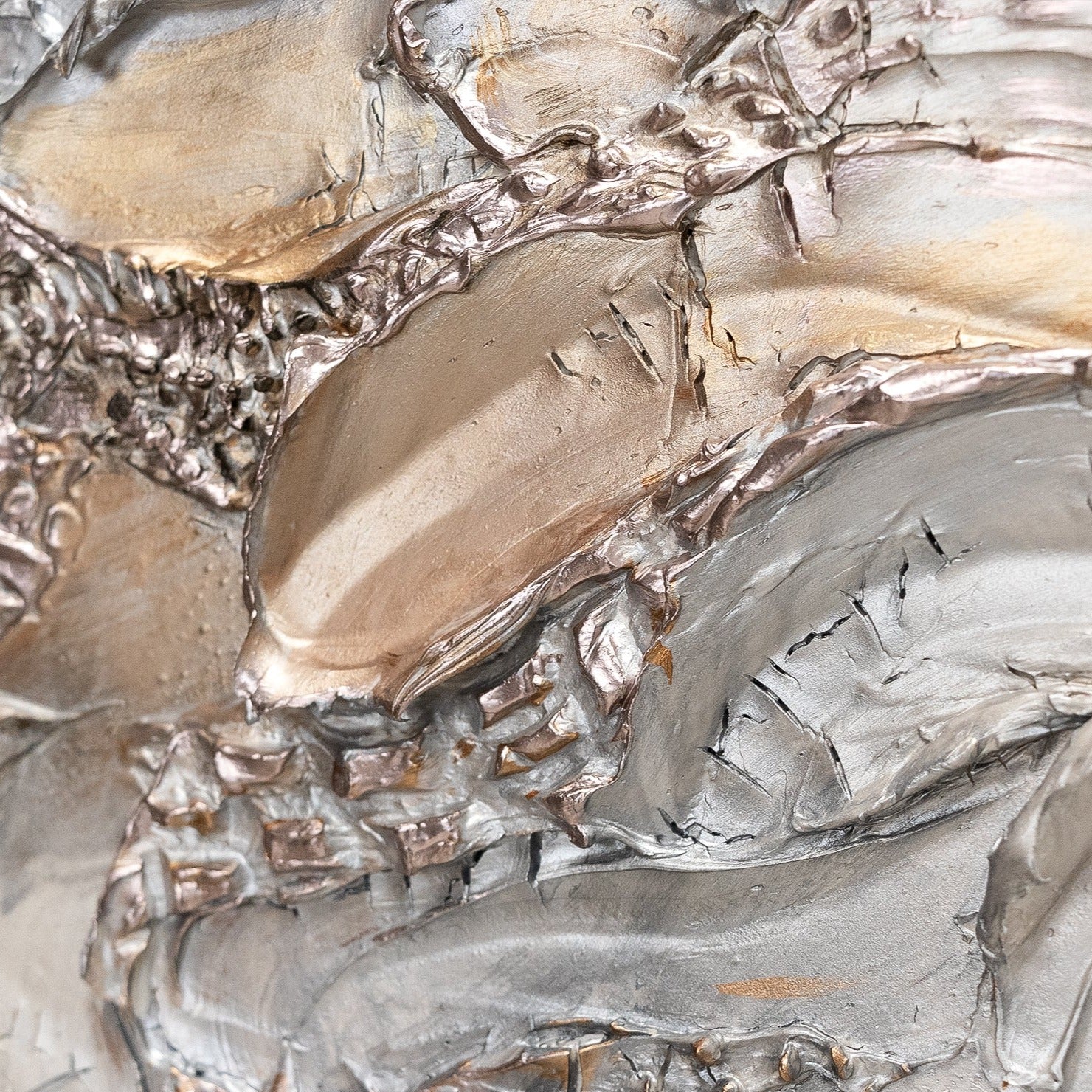 Una pintura estructurada con una abstracción excepcional será el complemento perfecto para su interior, resaltando su individualidad. El uso de hoja de oro y un hermoso marco oscuro subraya la sofisticación y la elegancia de esta obra de arte.