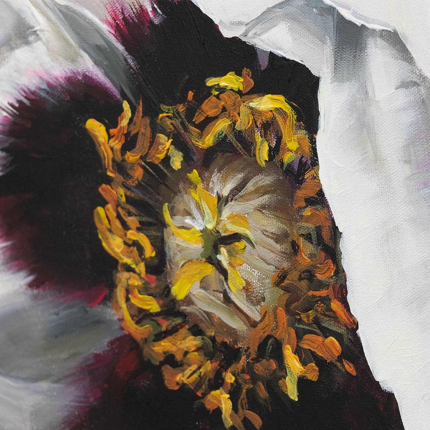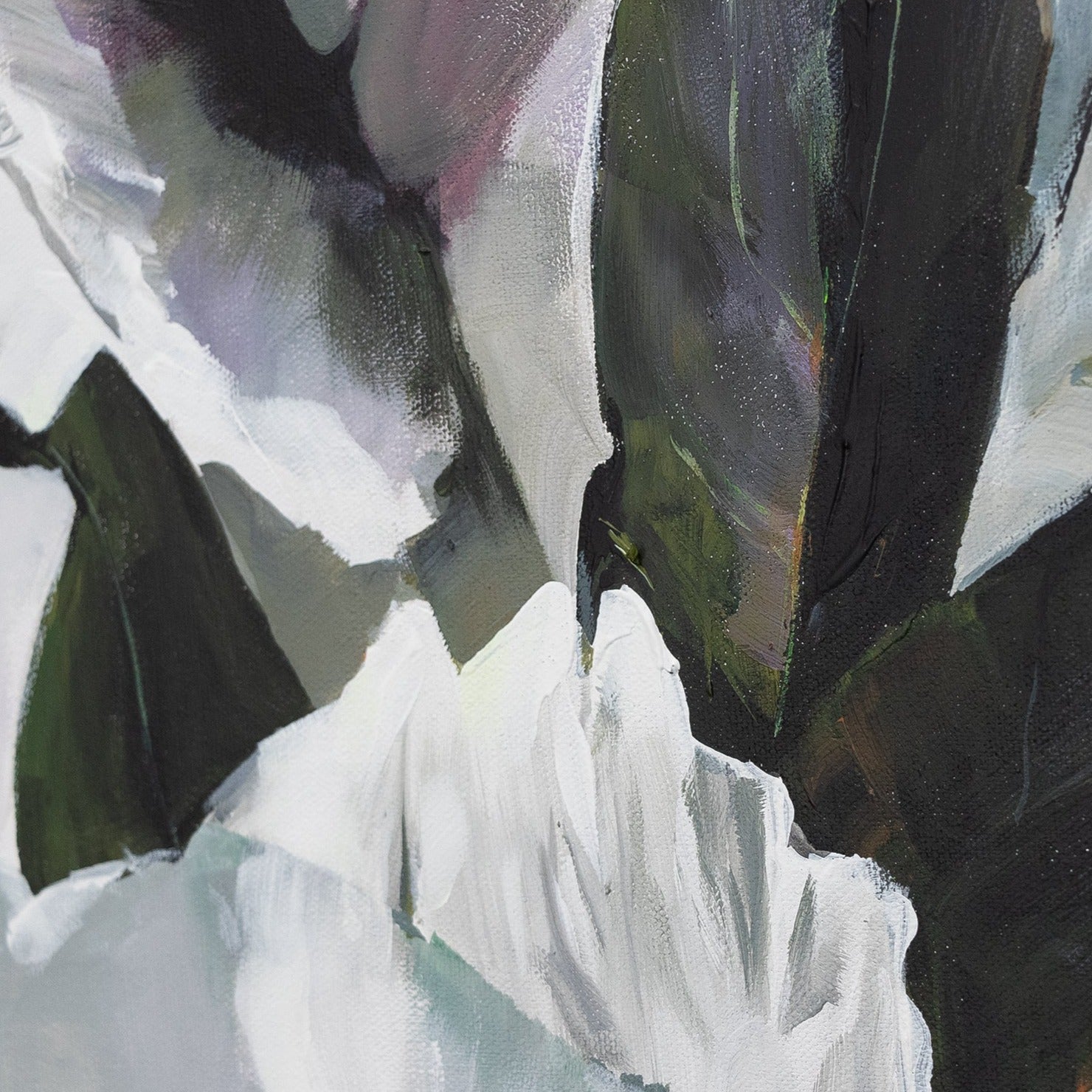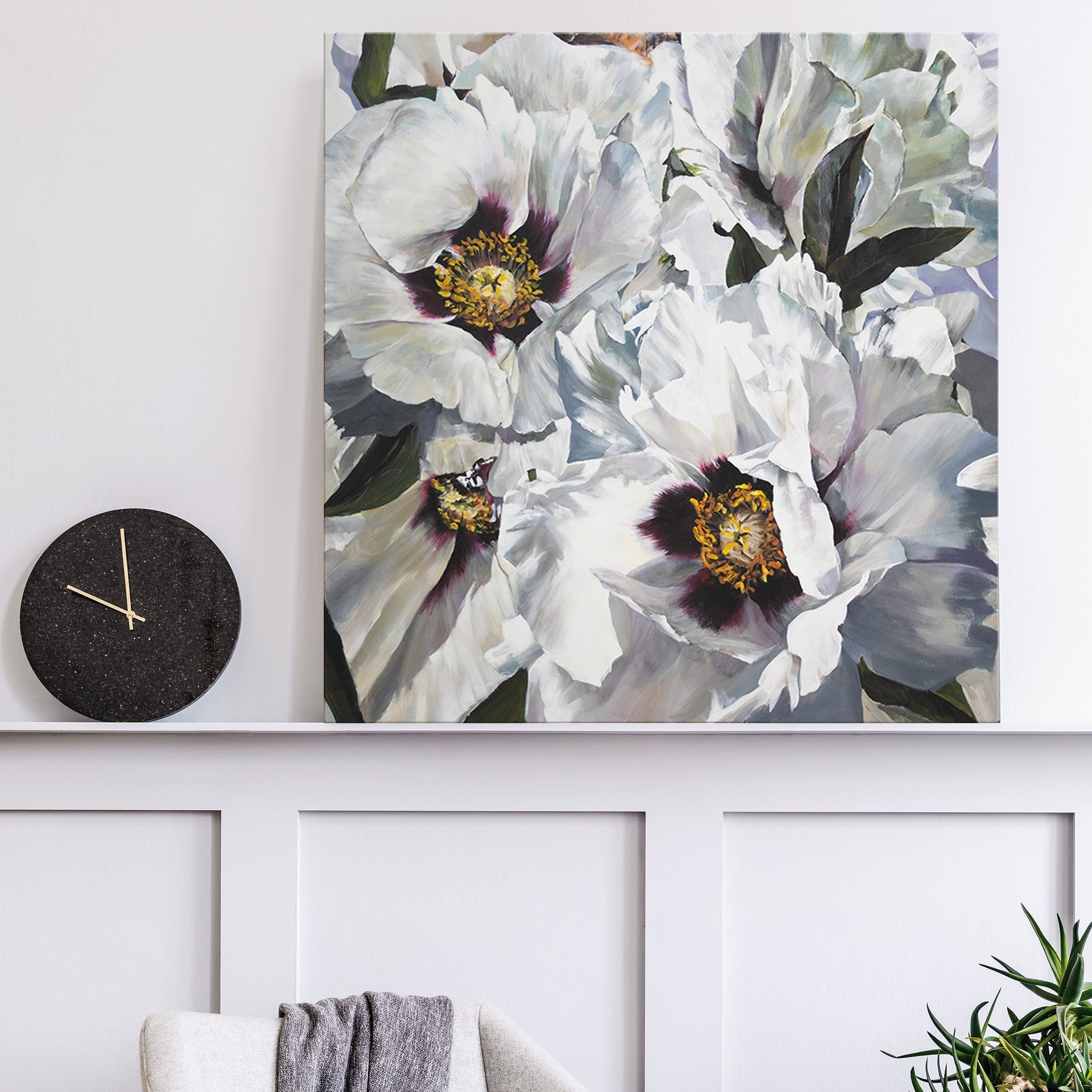 • Pintura de Flores "Loto de Nieve" 100x100cm – Pintura Abstracta Hecha a Mano en Lienzo