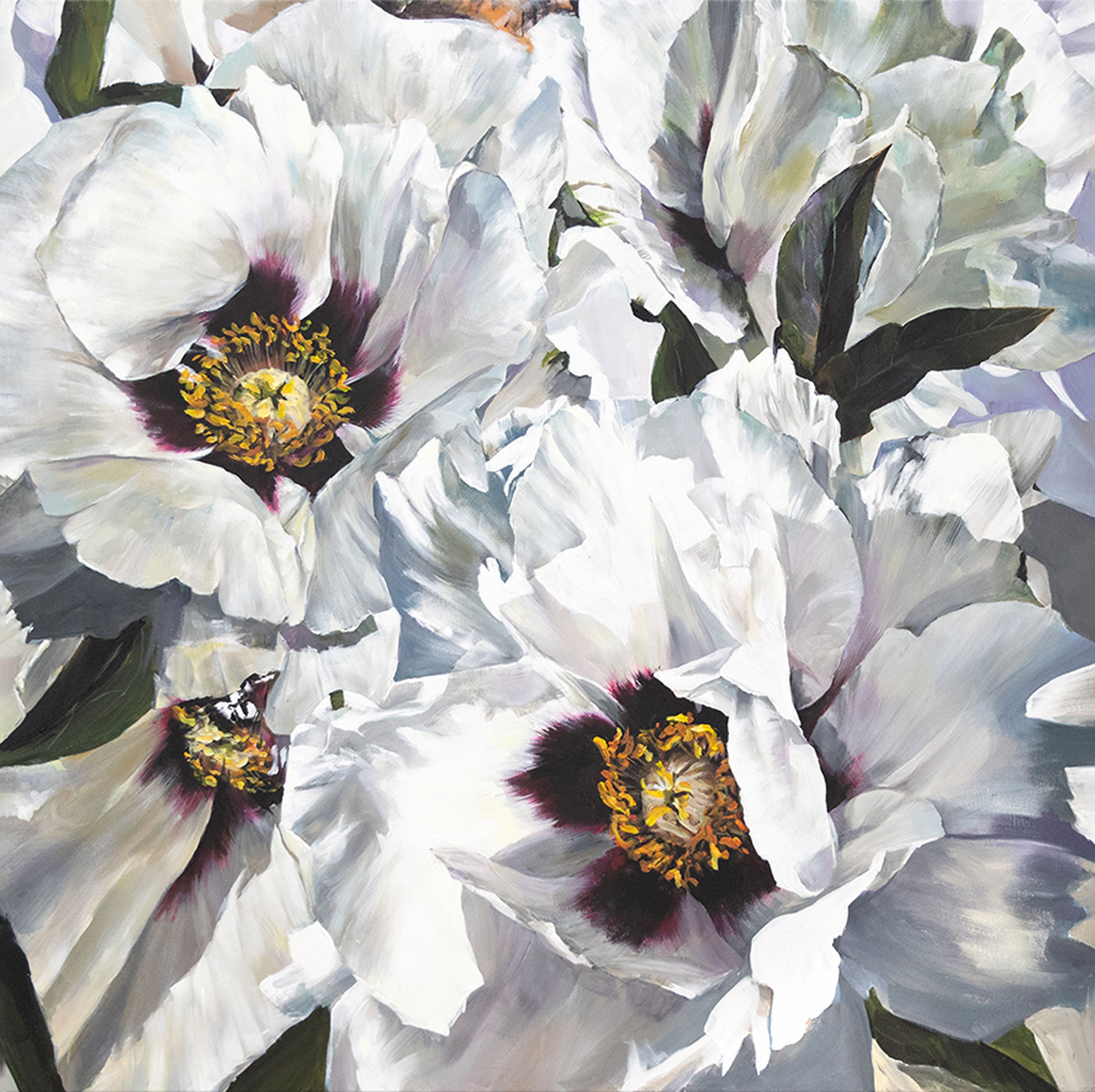 Pintura de Flores "Loto de Nieve" 100x100cm – Pintura Abstracta Hecha a Mano en Lienzo