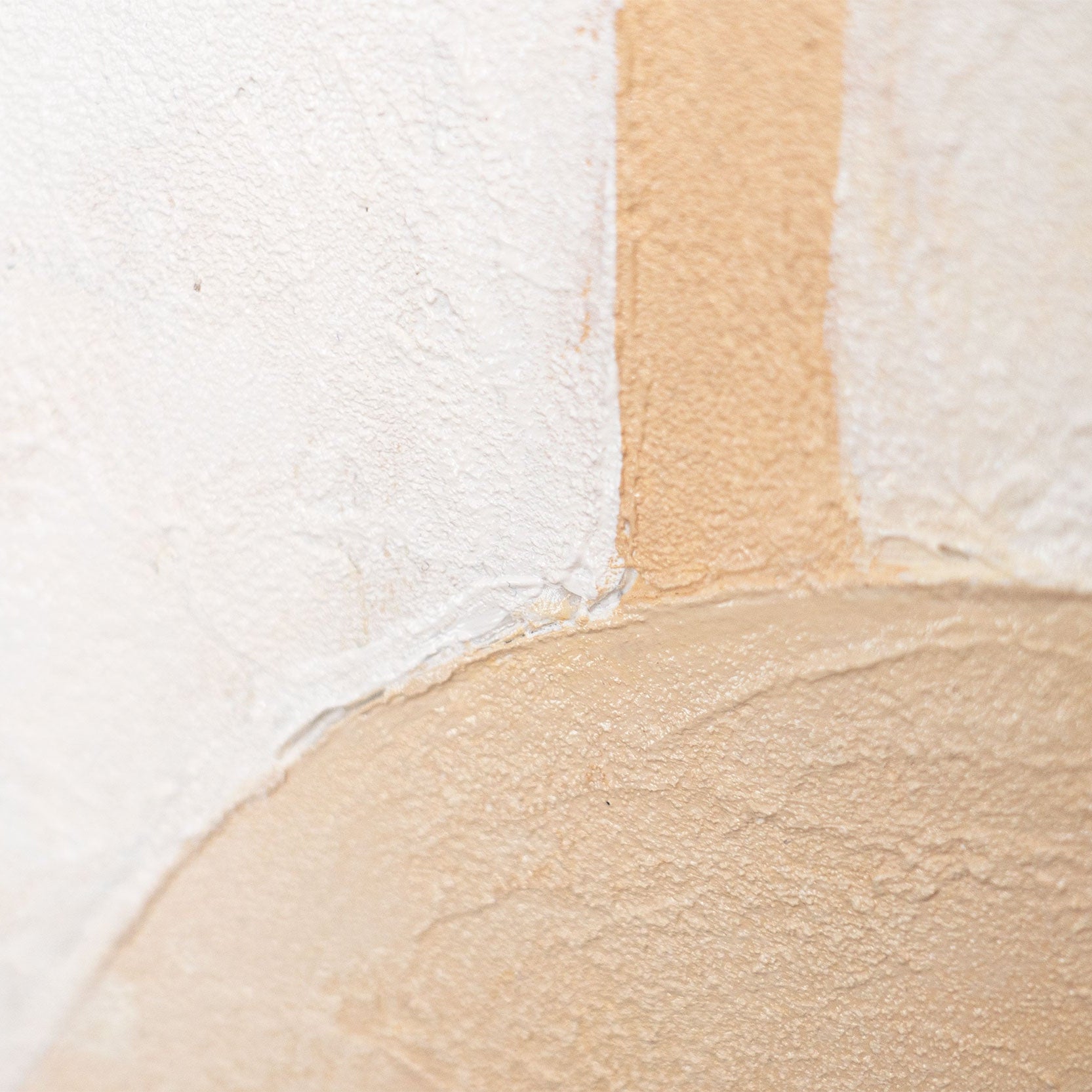 "Aliento de Arquitectura" es una pintura acrílica abstracta con líneas fluidas y transiciones suaves en tonos beige, crema y arena. La composición se presenta serena y estructurada, evocando formas arquitectónicas orgánicas con un efecto claro y equilibrado.
