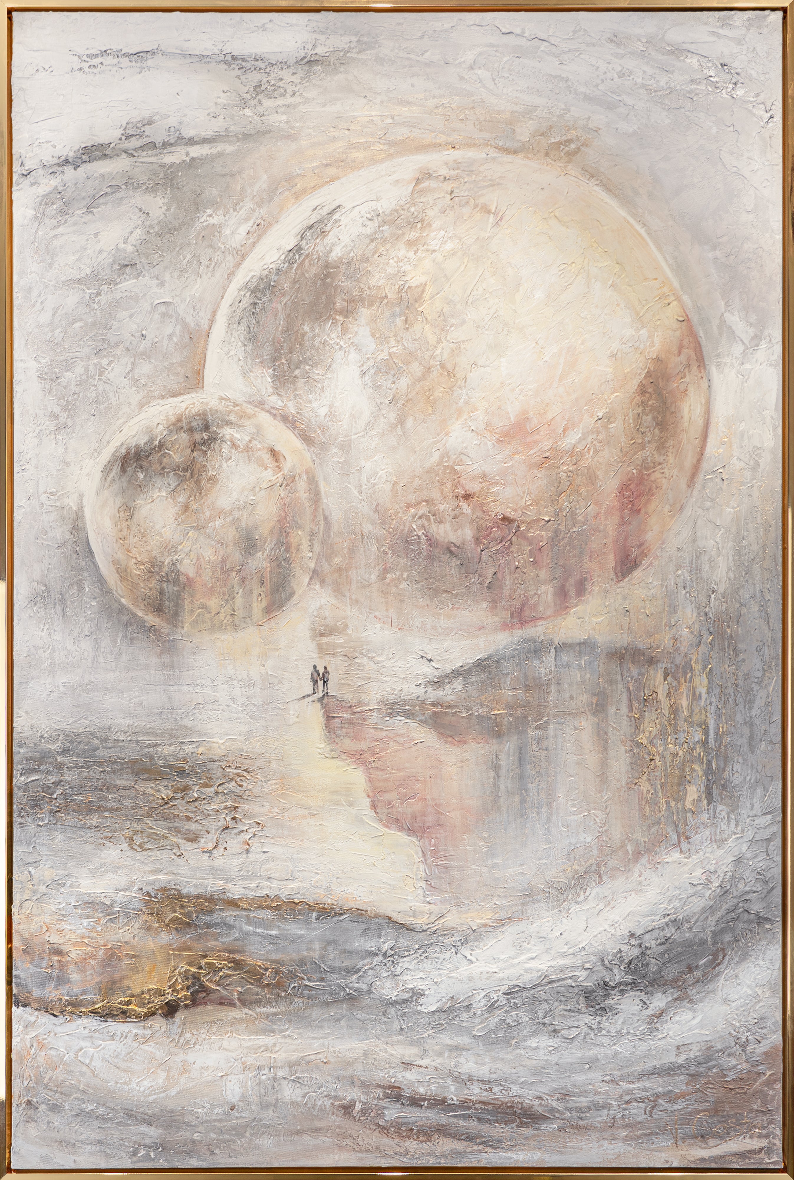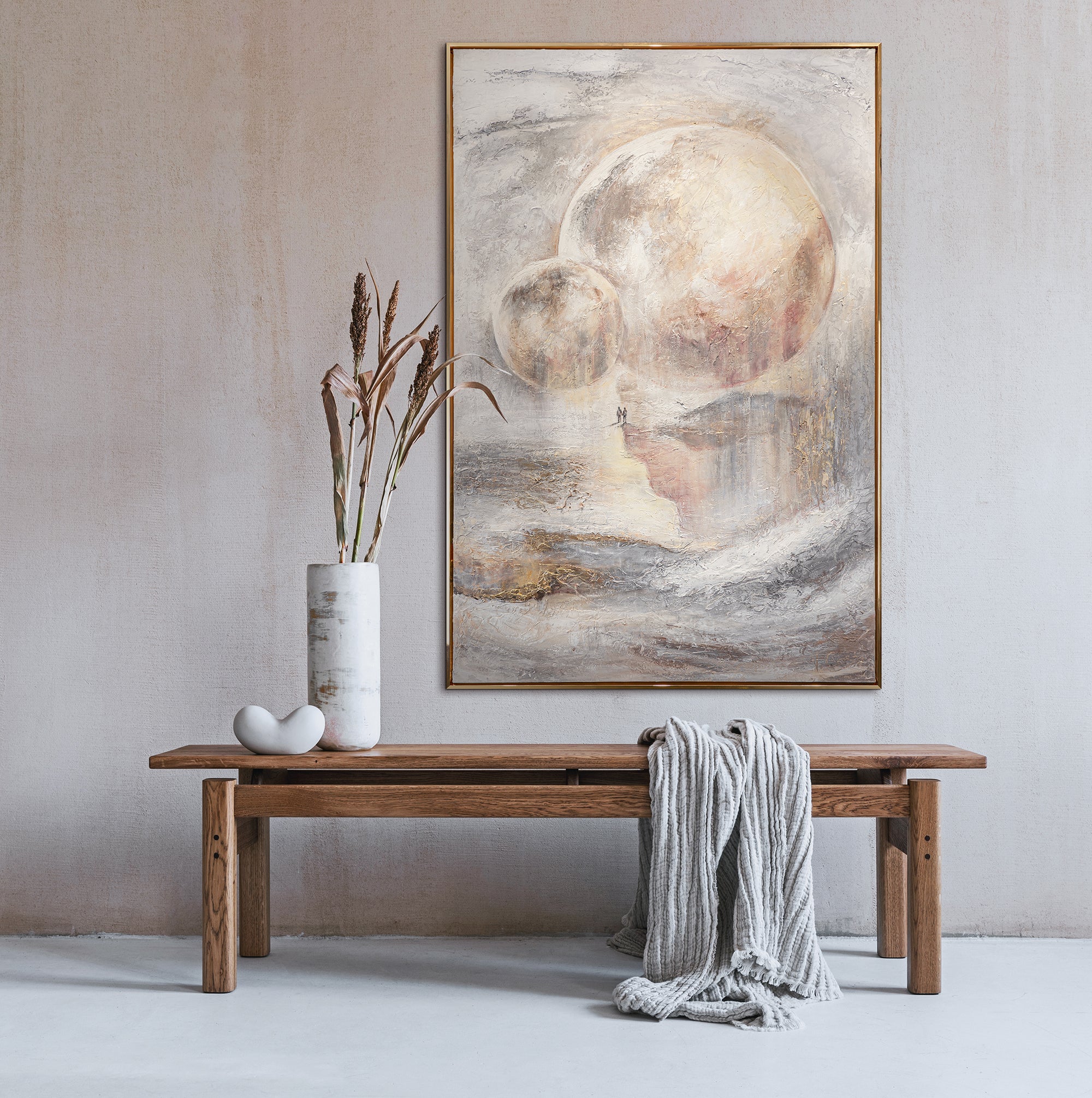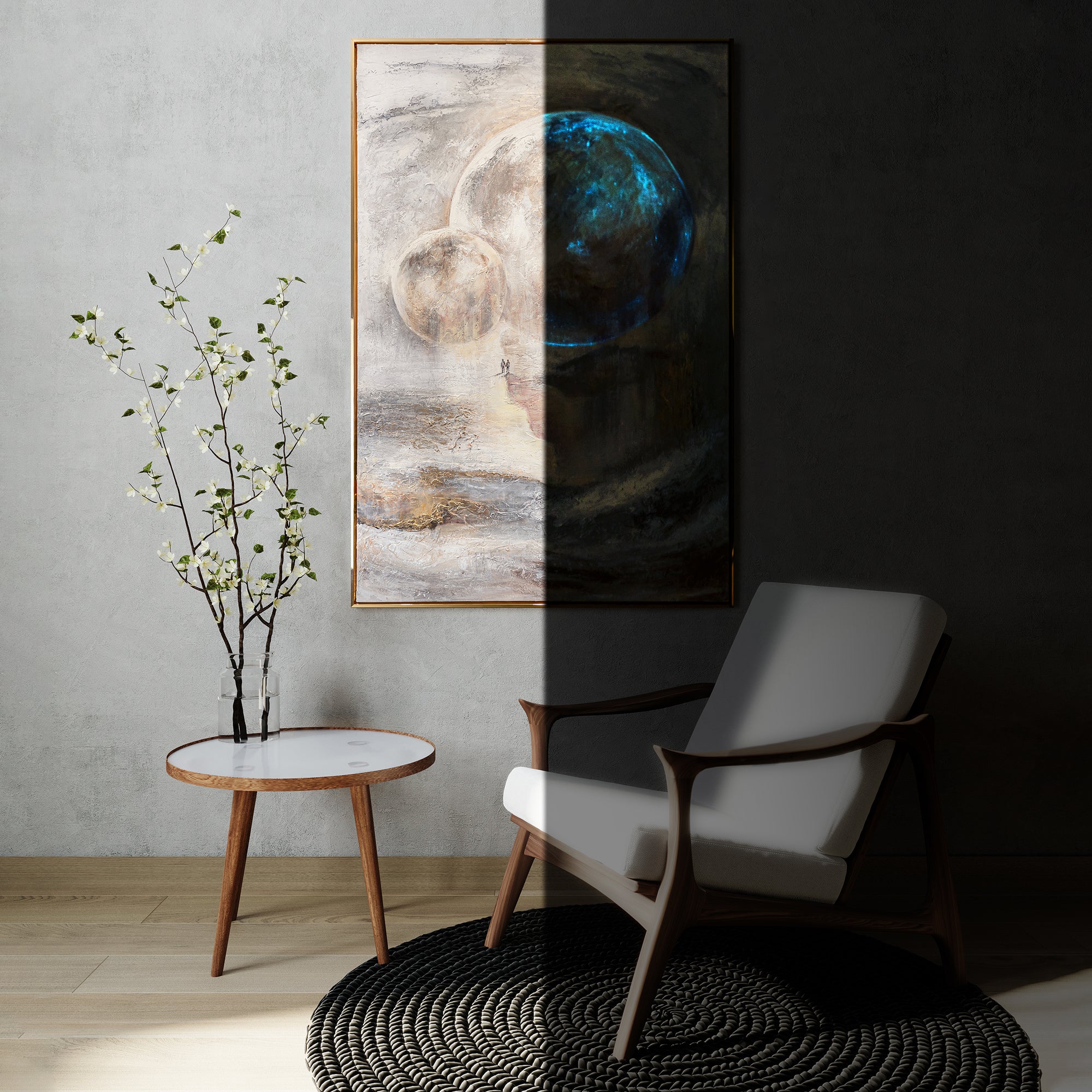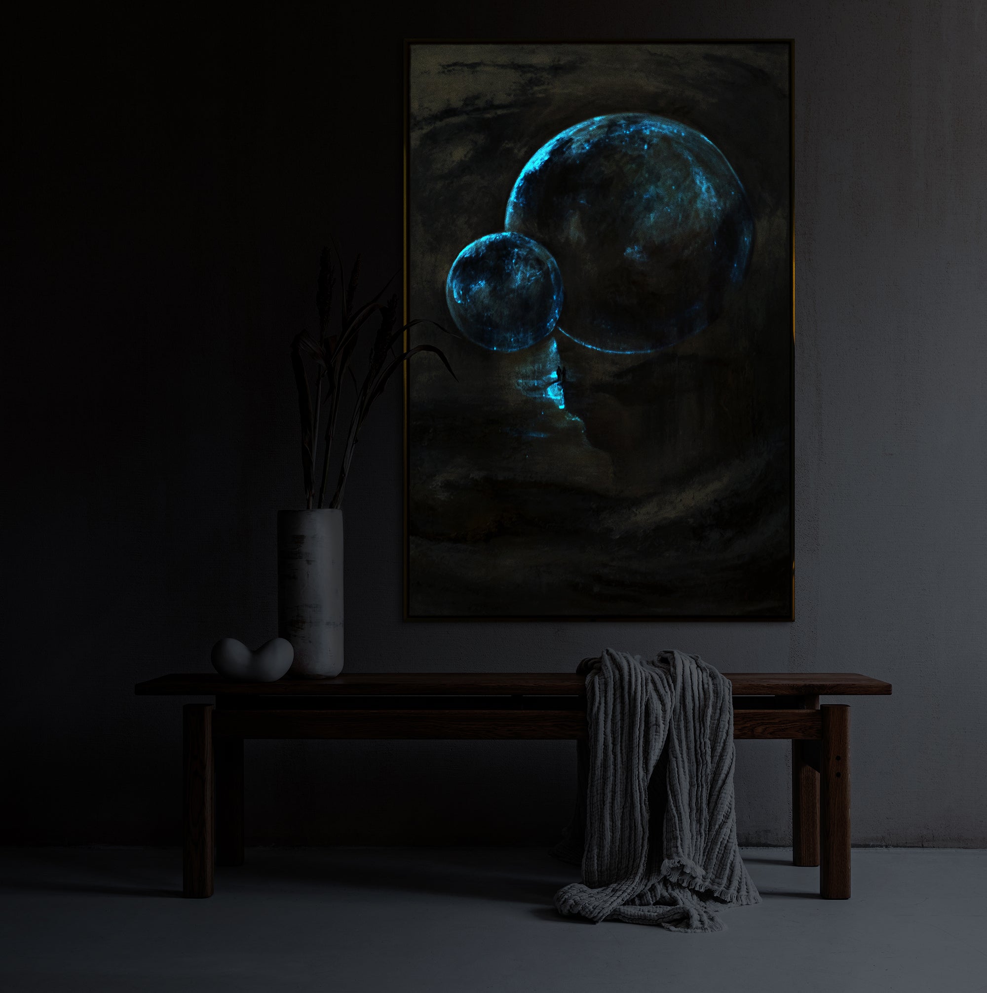 - El cuadro llega completamente montado en el bastidor, listo para colgar. No requiere luz adicional, ya que la luz natural es suficiente para activarlo.