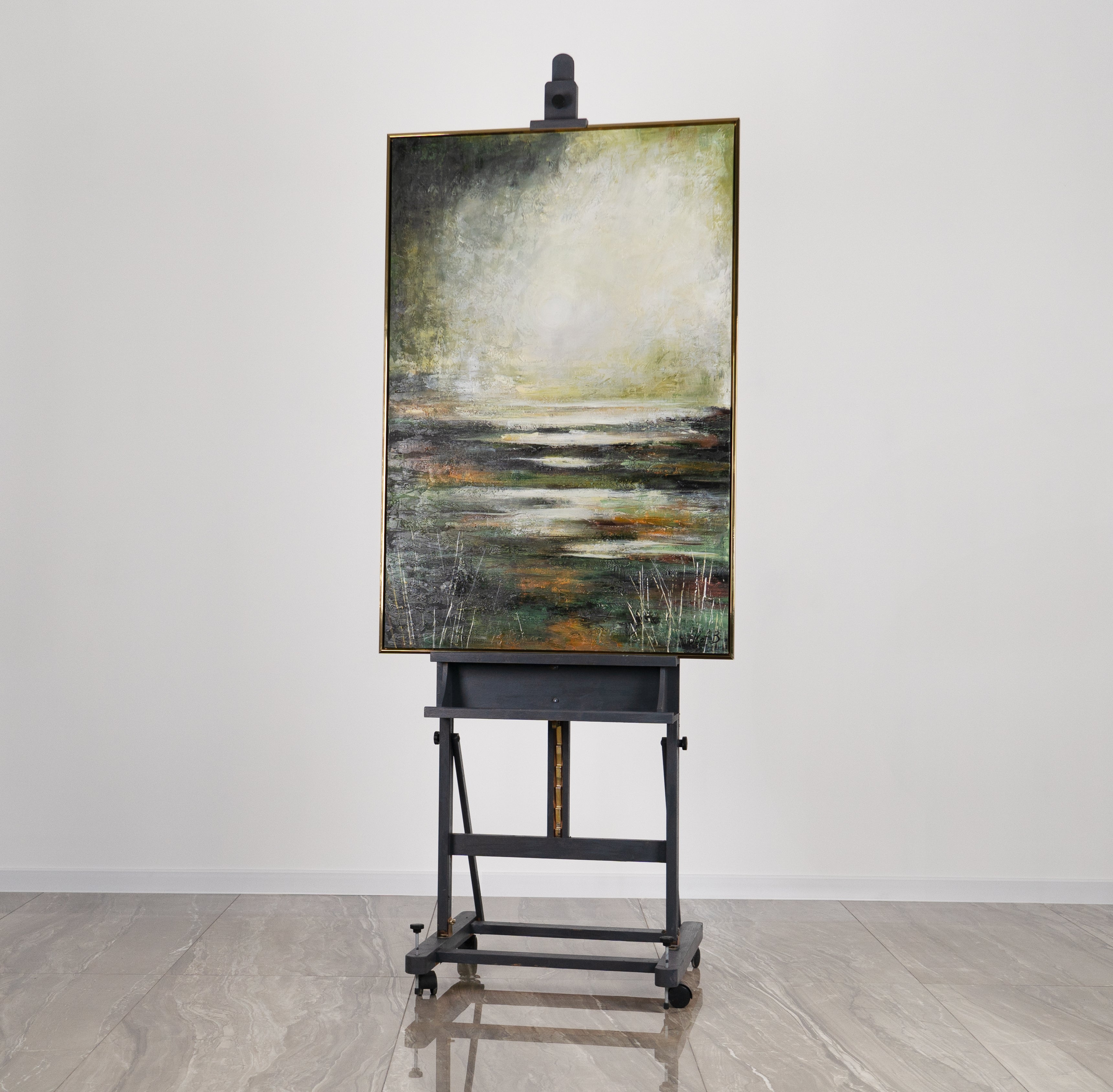 3. El cuadro llega completamente montado sobre el bastidor, listo para colgar. No requiere luz adicional, ya que la luz natural es suficiente para que brille.