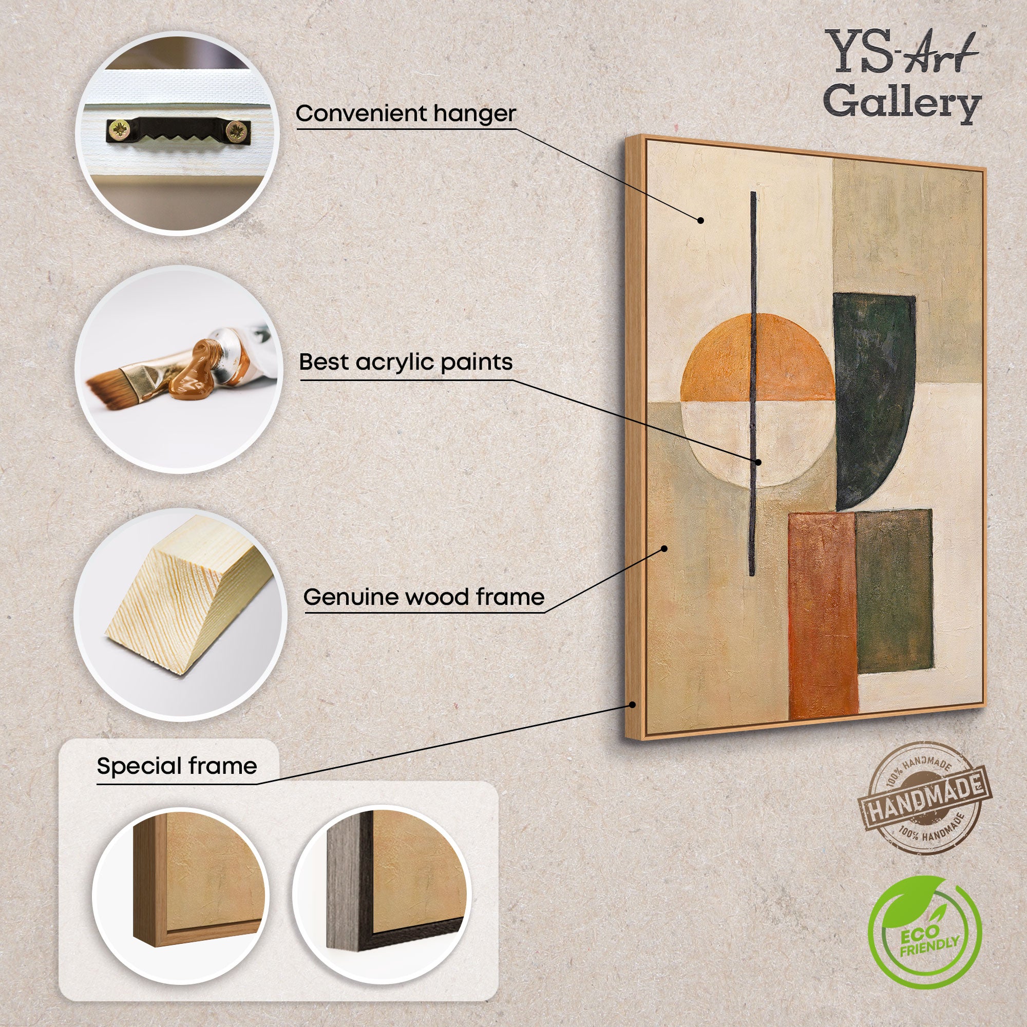 • Strukturierte Acrylmalerei mit Rahmen „Gleichgewicht“ – Geometrische Abstrakte Kunst