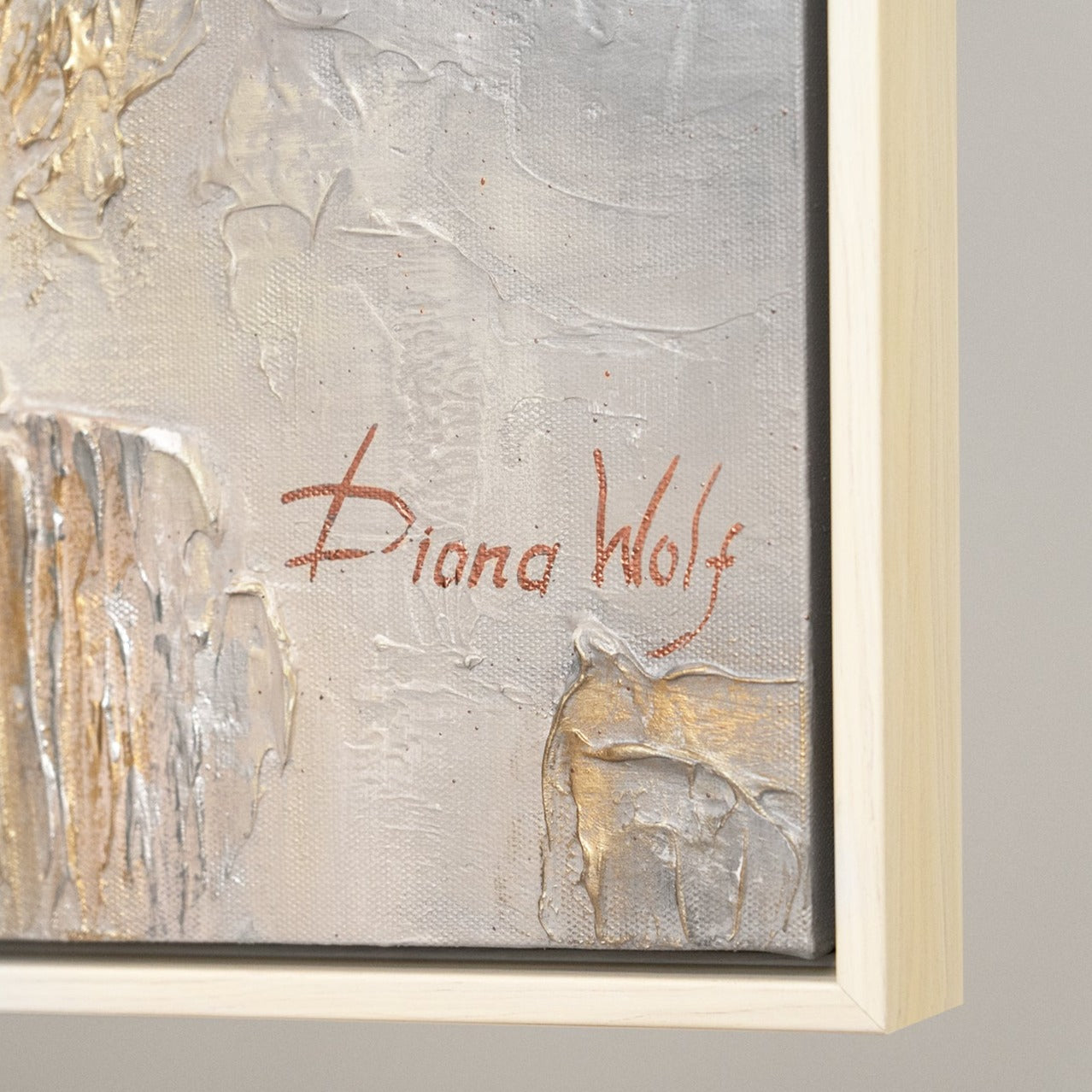• Acrylbild Struktur Weiß Gold Beige Handgemalt