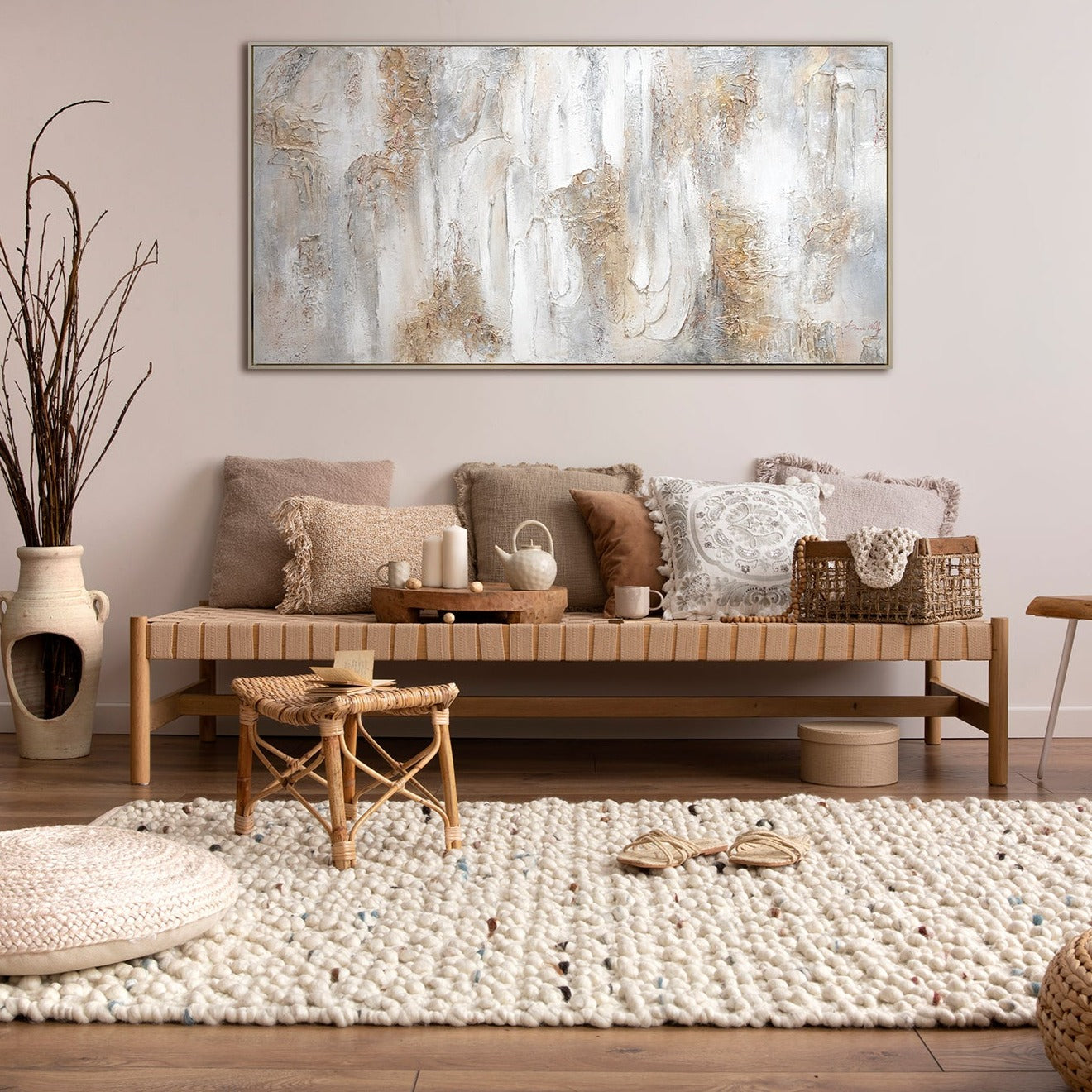 Sumérgete en la elegancia atemporal de esta pintura abstracta hecha a mano. Los colores armónicos y las fascinantes texturas crean una atmósfera relajante y elegante en cualquier habitación. Cada detalle de esta obra de arte es 100% hecho a mano y refleja perfectamente la visión artística del pintor. Disfruta del envío gratuito directamente a tu hogar.