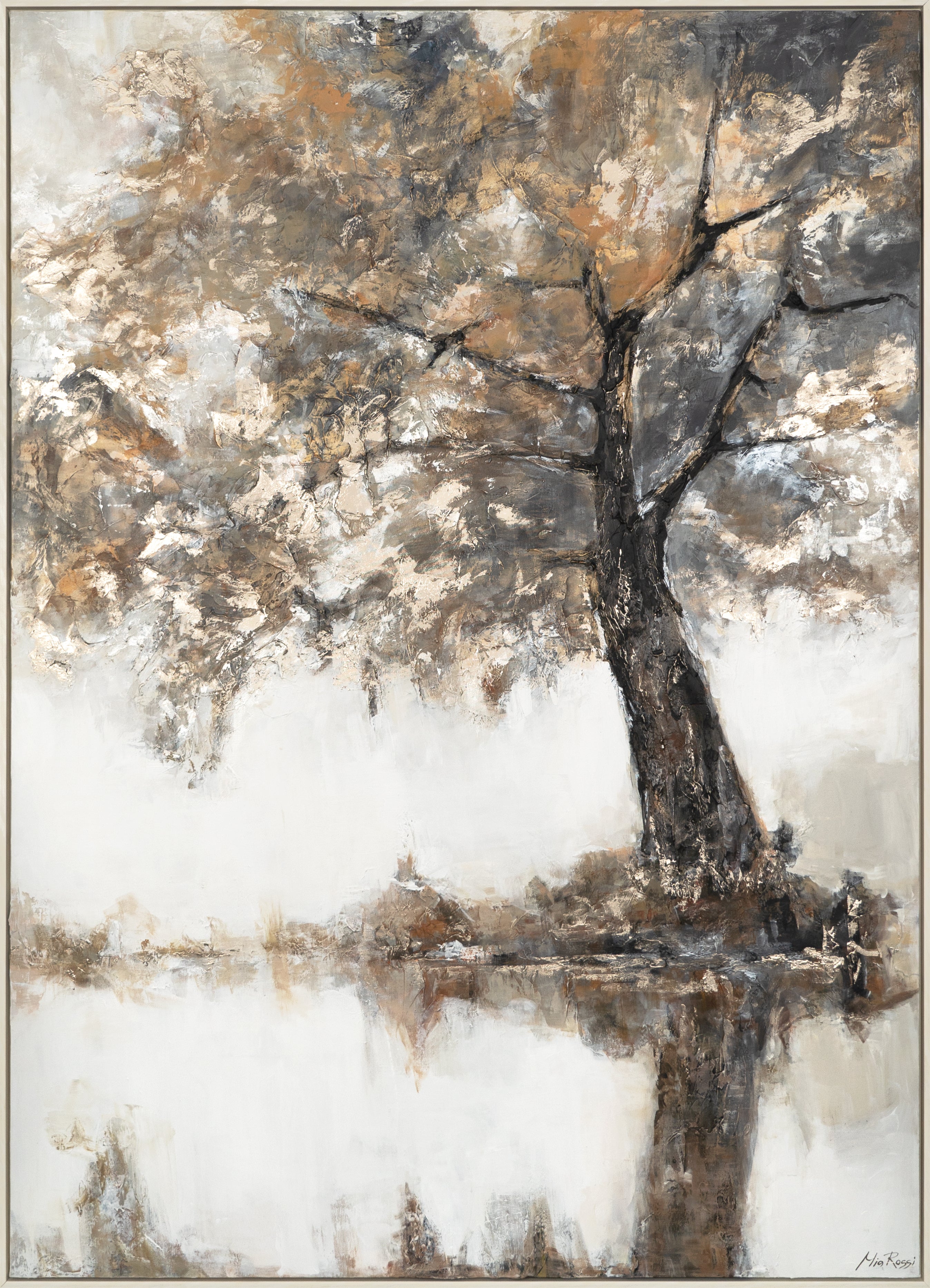 • Acrylbild Baum Handgemalt Struktur Natur Beige